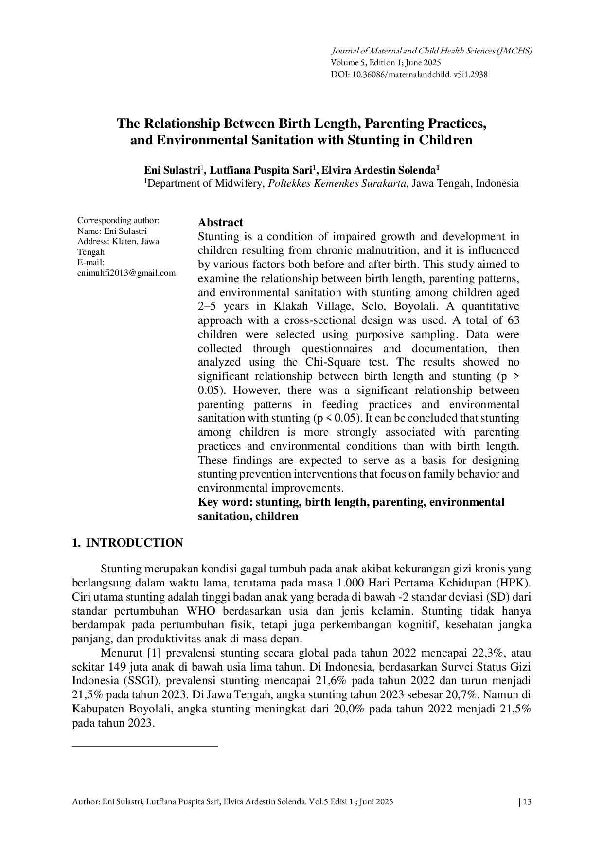 - HUBUNGAN KARAKTERISTIK BALITA, PENGETAHUAN IBU DAN SANITASI TERHADAP KEJADIAN STUNTING PADA BALITA DI... doi.org/10.32832/hearty.v7i2.2877HUBUNGAN KARAKTERISTIK BALITA PENGETAHUAN IBU DAN SANITASI TERHADAP KEJADIAN STUNTING PADA BALITA DI doi 10 32832 hearty v7i2 2877