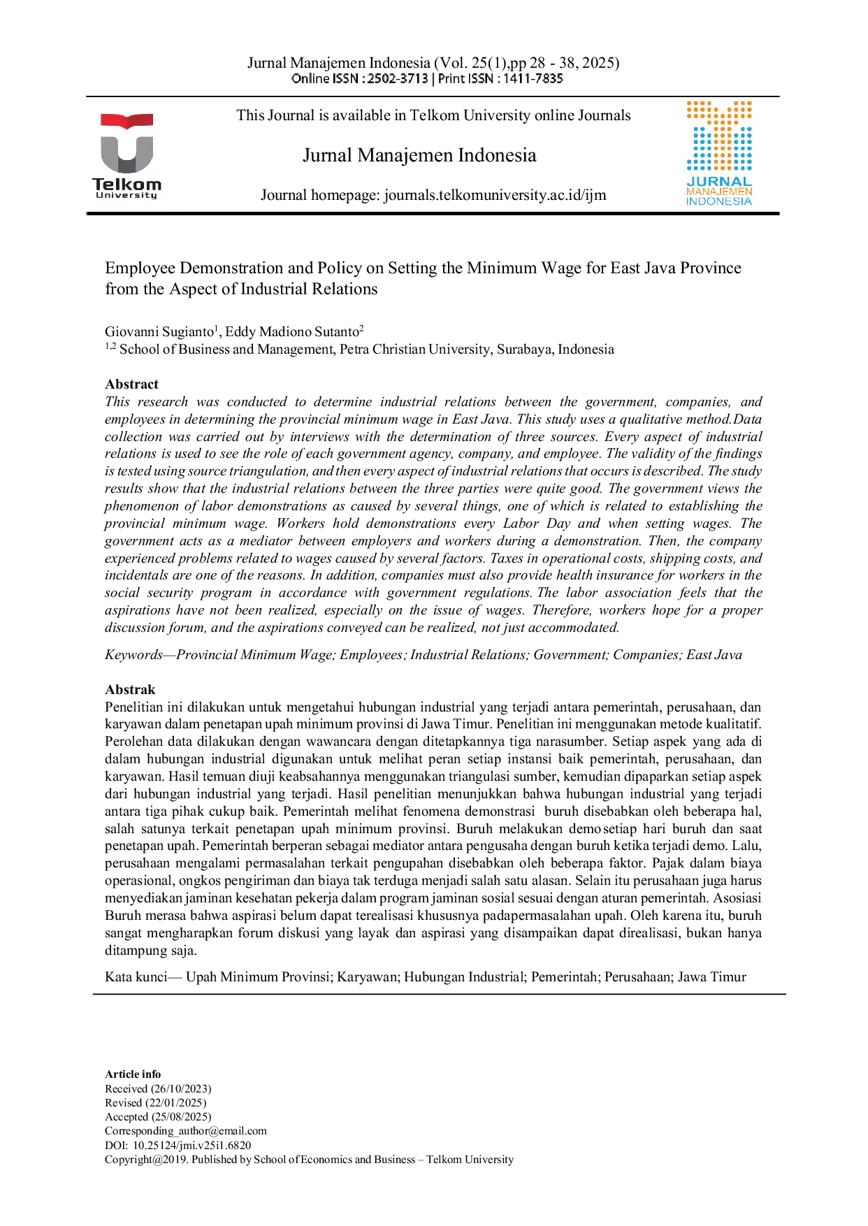 - Employee Demonstration and Policy on Setting the Minimum Wage for East Java Province from the Aspect... journals.telkomuniversity.ac.id/ijm/article/view/6820Employee Demonstration and Policy on Setting the Minimum Wage for East Java Province from the Aspect journals telkomuniversity ac ijm article view 6820