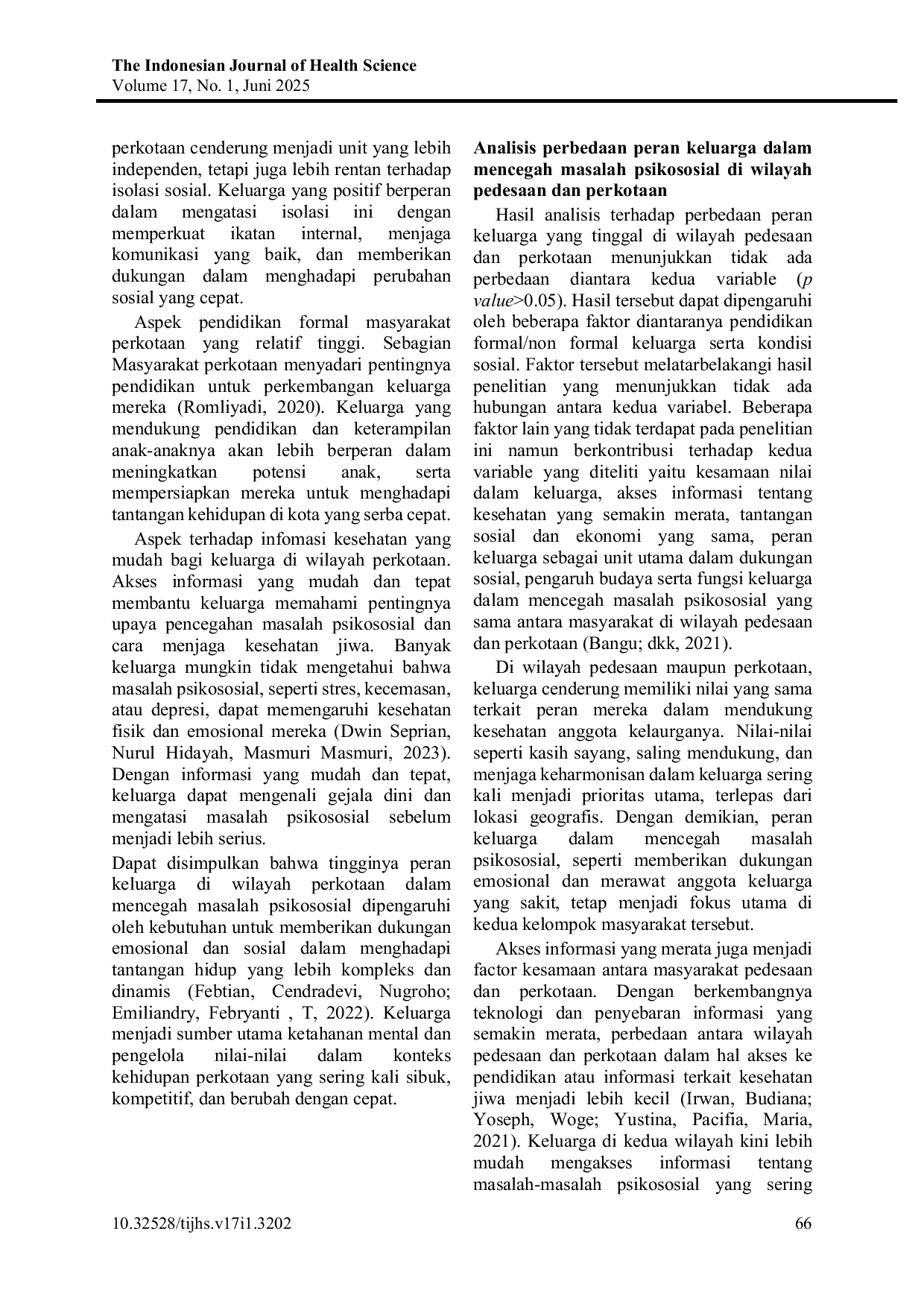 - Peranan Keluarga yang Tinggal di Wilayah Pedesaan dan Perkotaan dalam Mencegah Masalah Psikososial |... doi.org/10.32528/tijhs.v17i1.3202Peranan Keluarga yang Tinggal di Wilayah Pedesaan dan Perkotaan dalam Mencegah Masalah Psikososial doi 10 32528 tijhs v17i1 3202