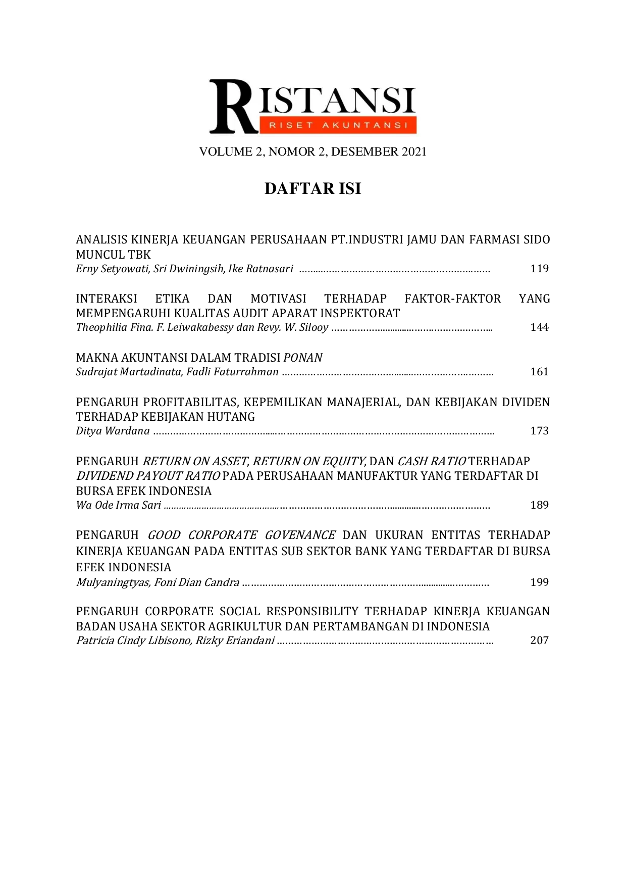 RISTANSI: Riset AkuntansiRISTANSI: Riset AkuntansiPenilaian kinerja keuangan perusahaan penting dilakukan untuk membantu pihak manajemen maupun investor dalam membuat keputusan. Salah satu metode untuk menganalisis penilaian kinerja keuangan perusahaan yaitu menggunakan metode analisis Economic Value Added (EVA). EVA merupakan metode analisa untuk mengetahui nilai tambah perusahaan dengan cara mengurangkan laba ekonomi terhadap biaya modal yang dikeluarkan. Analisis metode EVA dimulai dengan menghitung Net Operating Profit After Tax (NOPAT), Invest Capital(IC), Weighted Average Cost of Capital (WACC), Capital Charge (CC) dan Economic Value Added(EVA). Penelitian ini bertujuan untuk menilai kinerja keuangan PT. Industri Jamu dan Farmasi Sido Muncul Tbk, Tahun 2017-2019 dengan menggunakan metode analisis Economic Value Added (EVA). Penelitian ini bersifat deskriptif dan menggunakan pendekatan kuantitatif. Data dalam penelitian ini adalah laporan keuangan yaitu neraca dan laporan laba rugi. Dari hasil penelitian menunjukkan nilai EVA selama tahun penelitian mengalami kenaikan dan bernilai positif (EVA > 0). Hal ini menunjukkan bahwa PT. Industri Jamu dan Farmasi Sido Muncul Tbk mampu menciptakan nilai tambah ekonomis bagi manajemen dan investor (pemegang saham). Setelah dibandingkan dengan perusahaan sejenis, nilai EVA yang menempati posisi tertinggi yaitu PT. Kalbe Farma Tbk, kemudian urutan selanjutnya yaitu PT. Industri Jamu dan Farmasi Sido Muncul Tbk dan urutan yang terakhir yaitu PT Darya-Varia Laboratoria Tbk. Hasil penelitian ini diharapkan dapat memberikan sumbangan pemikiran dalam memperkaya wawasan mengenai konsep penilaian kinerja perusahaan dengan menggunakan Analisis Economic Value Added (EVA) y dan dapat memberikan informasi mengenai penilaian kinerja keuangan dengan menggunakan metode Economic Value Added (EVA), serta dapat membantu perusahaan dalam menerapkan langkah apa yang harus diambil untuk meningkatkan kinerja perusahaan serta menjadi referensi para investor kinerja sebelum memutuskan untuk berinvestasi.