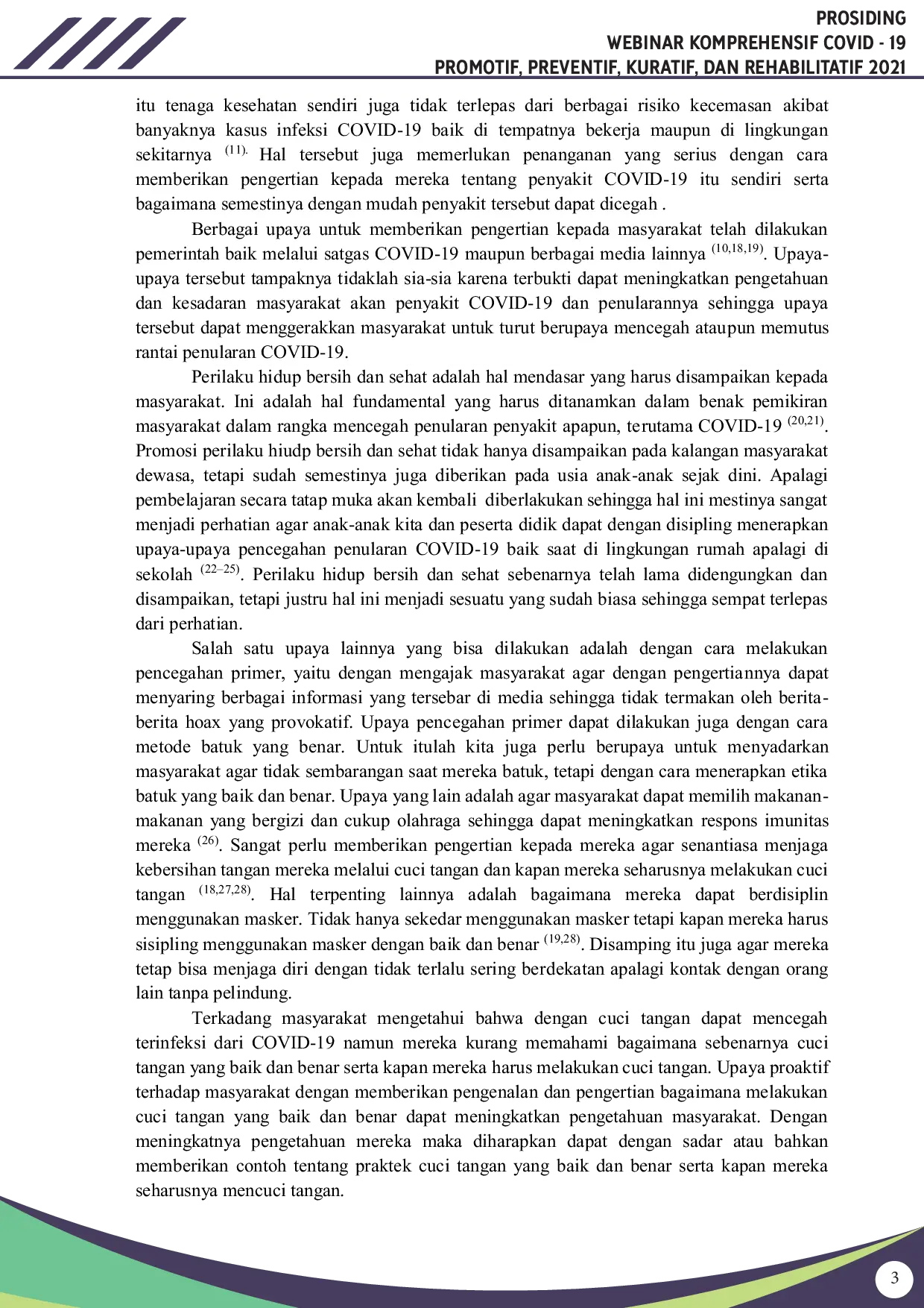 Penanggulangan pandemi COVID-19 tidak dapat terlepas dari upaya promotive dan preventif.Pembasmi yang pasti dari virus ini belum ditemukan sehingga upaya terbaik adalah dengan cara memutus mata rantai penularannya.Upaya promosi kesehatan adalah salah satu pilihan utama dalam memutuskan mata rantai penularan infeksi COVID-19.
