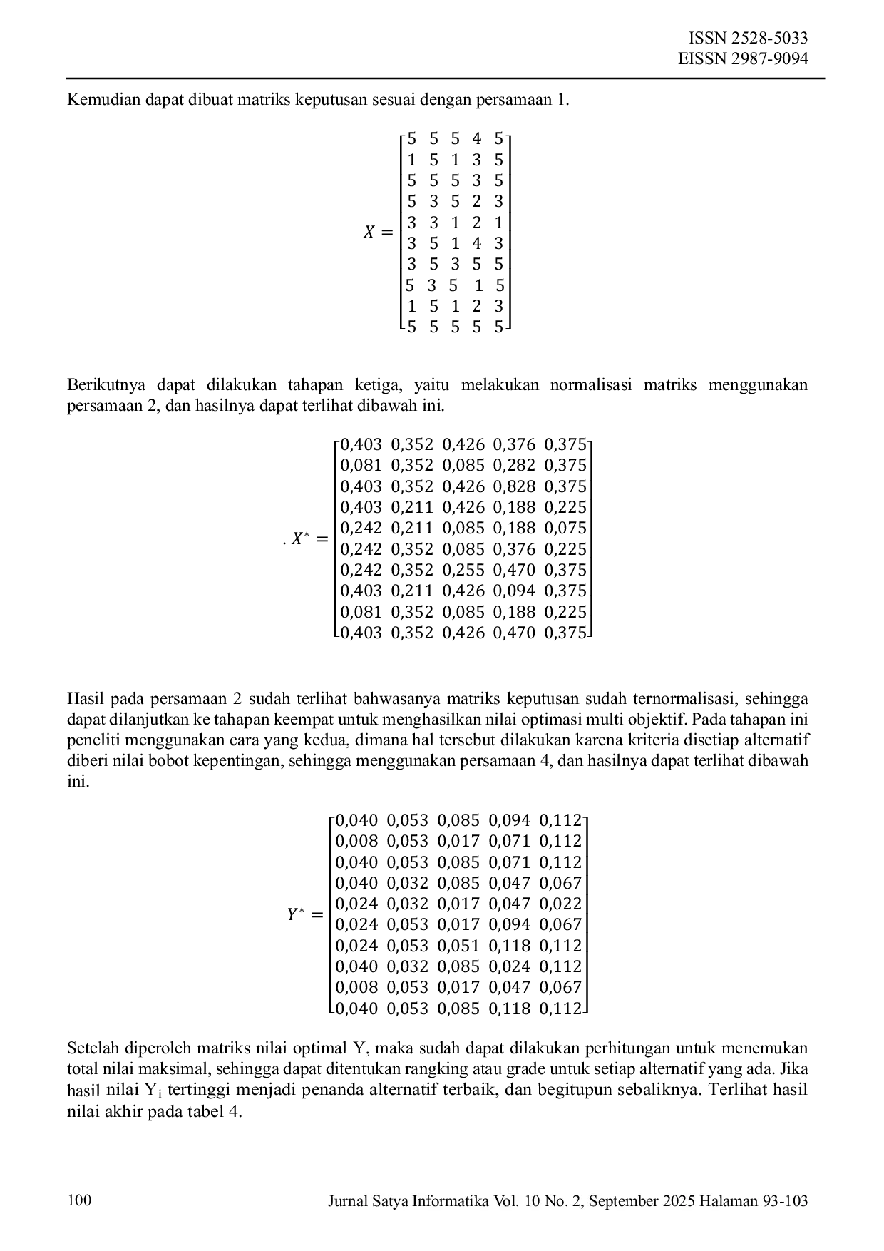 JURNAL SATYA INFORMATIKAJURNAL SATYA INFORMATIKAPenyediaan bantuan sosial kemanusiaan diberikan kepada masyarakat yang berada dalam keadaan tidak stabil, salah satunya dalam kondisi krisis ekonomi dan sosial. Bantuan sosial kemanusiaan juga dapat disalurkan melalui pengelolaan organisasi non-pemerintah yang memiliki peran serupa dalam melindungi masyarakat dari berbagai kondisi risiko sosial. Masalah yang sering dihadapi oleh pengelola Yayasan Solidaritas Insan Peduli (SIP) adalah sulitnya menentukan siapa yang akan diprioritaskan untuk menerima bantuan sesuai dengan persyaratan yang ditetapkan, yang terkadang menyebabkan subjektivitas dalam pengambilan keputusan. Tujuan dari penelitian ini adalah pengambilan keputusan dalam pemilihan penerima bantuan sosial kemanusiaan berdasarkan kriteria objektif. Untuk menyelesaikan masalah ini, metode Multi Objective Optimization on the basis of Ratio Analysis Method (MOORA) diterapkan. Hasil penelitian menunjukkan kemampuan menerapkan metode MOORA dalam pengambilan keputusan untuk memilih penerima bantuan sosial kemanusiaan sesuai dengan kriteria objektif dan terarah.