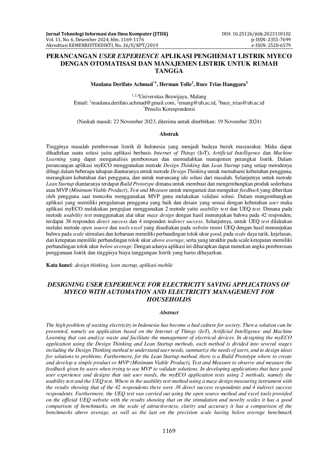 - Perancangan User Experience Aplikasi Penghemat Listrik Myeco Dengan Otomatisasi Dan Manajemen Listrik... doi.org/10.25126/jtiik.2023118102Perancangan User Experience Aplikasi Penghemat Listrik Myeco Dengan Otomatisasi Dan Manajemen Listrik doi 10 25126 jtiik 2023118102