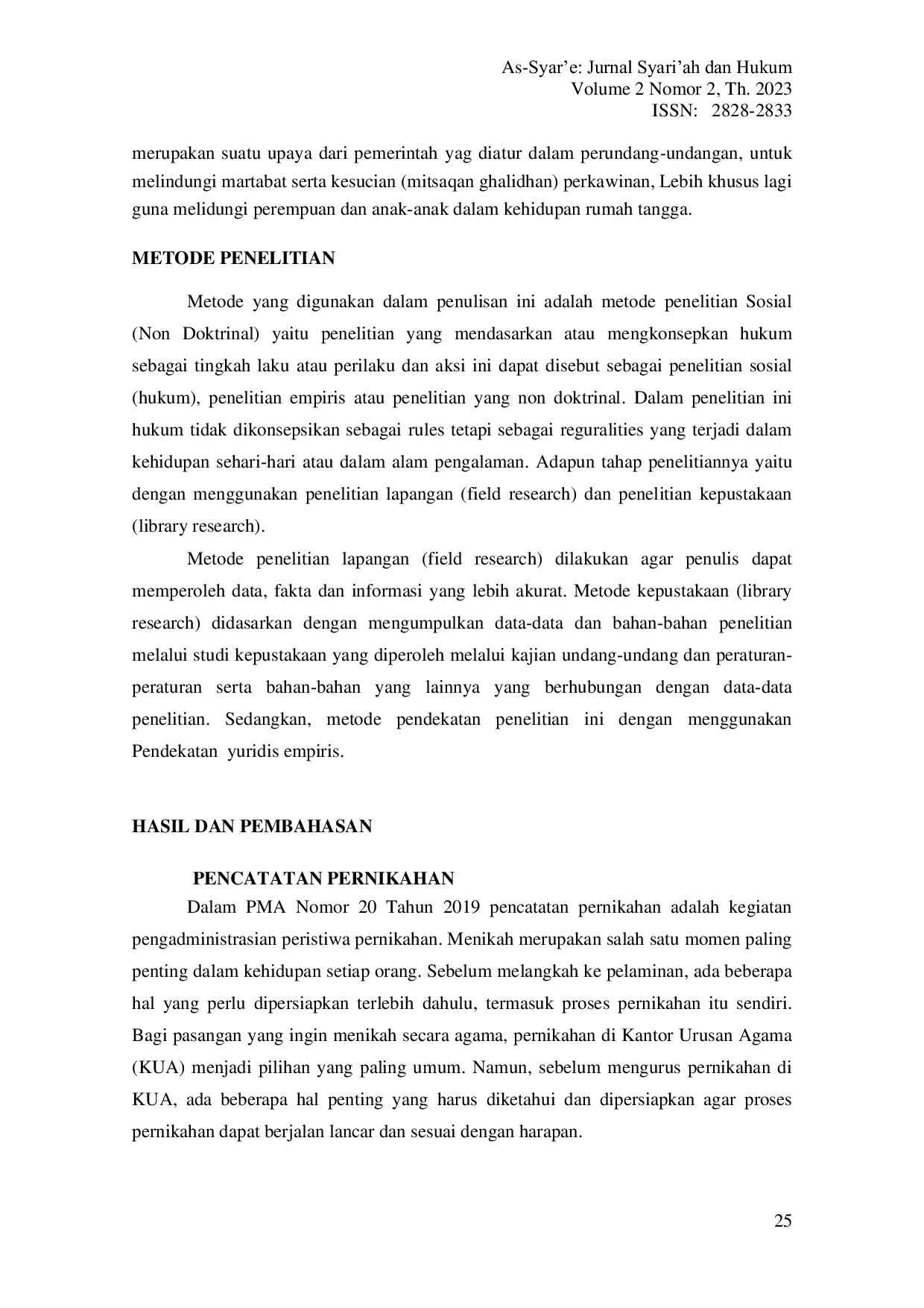 AS-Syar'e. jurnal Syari'ah dan HukumAS-Syar'e. jurnal Syari'ah dan HukumPenelitian ini dilatarbelakangi oleh keinginan penulis untuk mengetahui . Penelitian ini memfokuskan pada beberapa hal yang harus dikaji yaitu: Bagaimana proses pendaftaran pernikahan? Apakah calon pengantin mendaftar sendiri atau diwakilkan? Jenis penelitian ini adalah penelitian kualitatif, dalam mengumpulkan data peneliti menggunakan metode observasi, wawancara, dan dokumentasi. Sumber data penelitian ini adalah pihak KUA yaitu Kepala KUA dan Penghulu, calon pengantin, serta tokoh masyarakat. Kemudian data yang peneliti kumpulkan dianalisis menggunakan beberapa tahap yakni reduksi data, penyajian data dan penarikan kesimpulan. Hasil dari penelitian tentang . Didapati bahwa yang mendaftarkan calon pengantin sebagian besar adalah eks P3N dan perangkat desa.