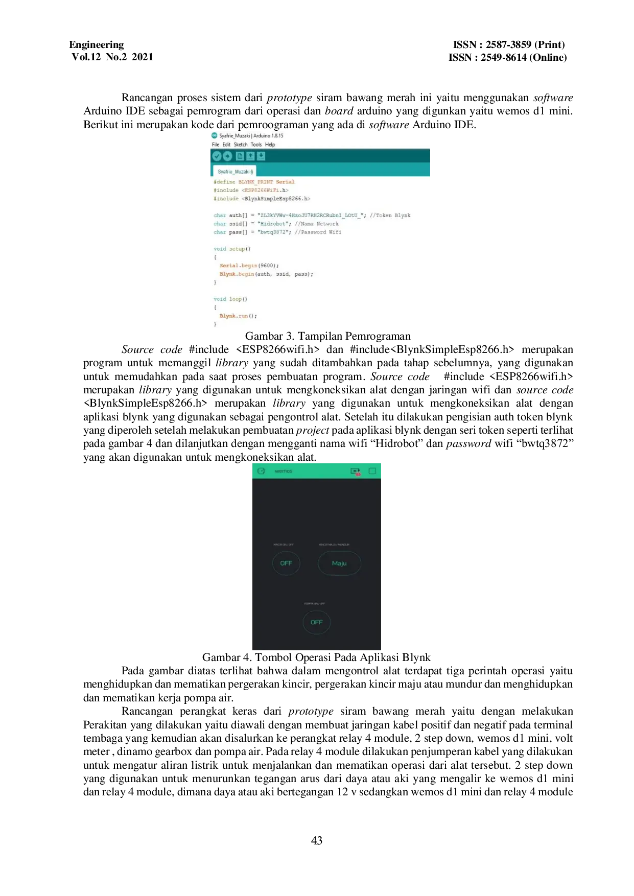 Engineering : Jurnal Bidang TeknikEngineering : Jurnal Bidang TeknikDesa Sigentong merupakan salah satu daerah penghasil bawang merah terbesar di Kecamatan Wanasari, Kabupaten Brebes. Budidaya tanaman bawang merah membutuhkan sistem pengairan tambahan yang efisien karena tanaman bawang merah memiliki sistem perakaran yang dangkal dan rentan terhadap hilangnya kelembaban. Petani bawang merah Desa Sigentong masih menggunakan alat siram manual yang menyebabkan beban kerja berat. Penelitian ini merancang prototype siram bawang merah dengan jaringan wireless menggunakan metode Ergonomic Function Deployment untuk mengurangi beban kerja petani. Hasil penelitian menunjukkan bahwa alat ini berfungsi dengan baik, tidak mudah lepas, berbahan plastik, tidak menghasilkan panas, aman digunakan, dan beroperasi tidak secara manual. Uji beda konsumsi energi menunjukkan penurunan sebesar -64,3% terhadap pesaing 1 dan -40,99% terhadap pesaing 2, dengan rerata konsumsi energi 0,72 kkal/menit, termasuk kriteria beban kerja ringan.