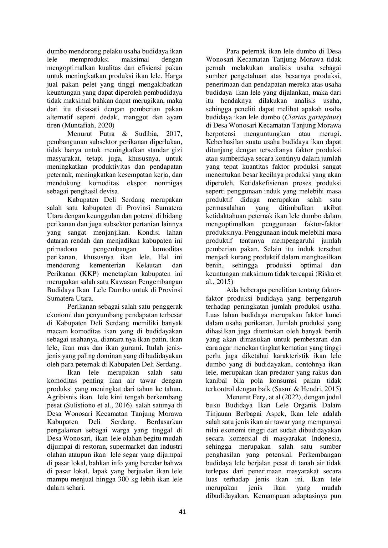 Berdasarkan hasil penelitian, perlu dilakukan penelitian lebih lanjut mengenai efektivitas penggunaan pakan alternatif untuk menekan biaya produksi, mengingat biaya pakan merupakan faktor yang signifikan mempengaruhi pendapatan peternak. Selain itu, penelitian mengenai optimalisasi luas tambak dan kepadatan tebar ikan lele perlu dilakukan untuk memaksimalkan produksi per unit lahan. Terakhir, studi mengenai penerapan teknologi budidaya yang lebih modern, seperti sistem bioflok atau recirculating aquaculture system (RAS), dapat dilakukan untuk meningkatkan efisiensi produksi dan kualitas ikan lele dumbo, serta mengurangi dampak lingkungan dari kegiatan budidaya. Penelitian-penelitian ini diharapkan dapat memberikan informasi yang lebih komprehensif bagi peternak ikan lele dumbo dalam meningkatkan produktivitas dan keuntungan usaha mereka, serta mendukung keberlanjutan sektor perikanan budidaya di Kabupaten Deli Serdang.