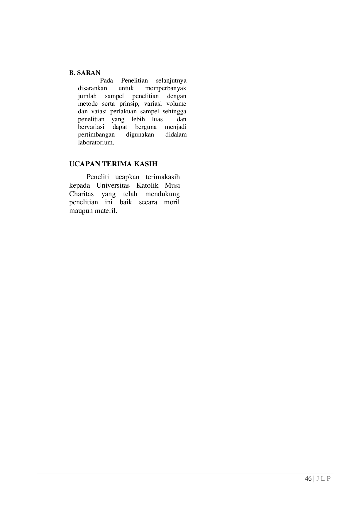Penelitian lanjutan disarankan untuk memperbanyak jumlah sampel dengan variasi metode dan prinsip, volume sampel, serta perlakuan sampel yang berbeda untuk memberikan pertimbangan yang lebih komprehensif dalam penggunaan di laboratorium. Selain itu, penelitian lebih lanjut dapat dilakukan untuk menginvestigasi pengaruh waktu penundaan yang lebih lama terhadap jumlah trombosit setelah homogenisasi sekunder. Penelitian juga dapat difokuskan pada perbandingan efektivitas berbagai teknik homogenisasi sekunder selain inversi, seperti penggunaan alat pengaduk otomatis atau metode vortexing, untuk menentukan metode yang paling optimal dalam menjaga integritas sampel dan akurasi hasil pemeriksaan. Terakhir, studi lebih mendalam diperlukan untuk mengeksplorasi dampak penggunaan jenis antikoagulan yang berbeda terhadap stabilitas trombosit selama penundaan pemeriksaan dan setelah homogenisasi sekunder, guna memberikan rekomendasi yang lebih spesifik terkait pemilihan antikoagulan yang sesuai.