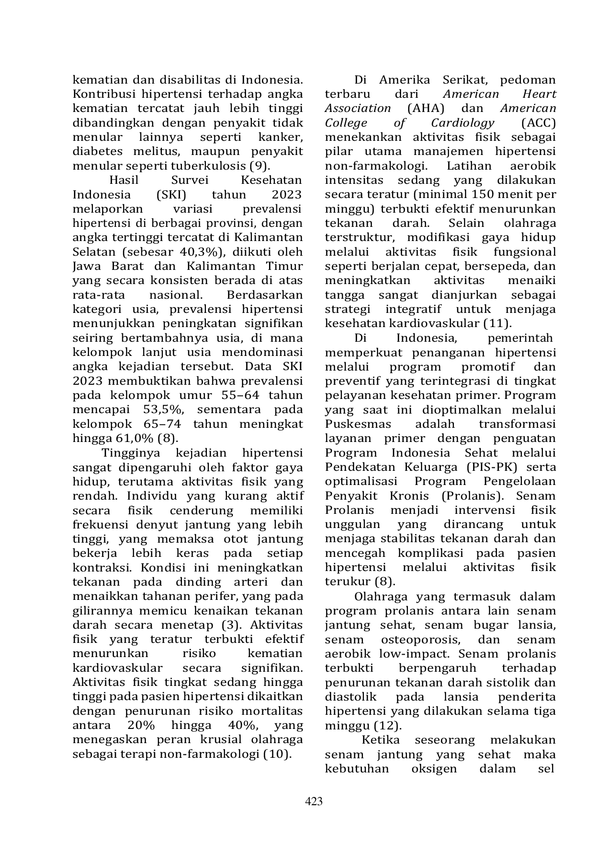 Berdasarkan hasil penelitian ini, beberapa saran penelitian lanjutan dapat dipertimbangkan. Pertama, penelitian lebih lanjut dapat dilakukan untuk menginvestigasi pengaruh kombinasi senam Prolanis dan rendam kaki air hangat terhadap kualitas hidup lansia penderita hipertensi, termasuk aspek psikologis dan sosialnya. Kedua, studi komparatif dapat dilakukan untuk membandingkan efektivitas intervensi ini dengan modalitas terapi non-farmakologis lainnya, seperti yoga atau meditasi, untuk menentukan pendekatan yang paling optimal. Ketiga, penelitian dengan desain studi longitudinal diperlukan untuk mengevaluasi efektivitas jangka panjang dari intervensi ini dan mengidentifikasi faktor-faktor yang dapat memengaruhi keberhasilan implementasinya. Penelitian-penelitian ini diharapkan dapat memberikan pemahaman yang lebih komprehensif tentang manfaat senam Prolanis dan rendam kaki air hangat bagi lansia dengan hipertensi, serta memberikan dasar ilmiah yang kuat untuk pengembangan program kesehatan yang lebih efektif dan berkelanjutan. Dengan demikian, diharapkan kualitas hidup lansia dapat meningkat dan beban penyakit hipertensi dapat berkurang.