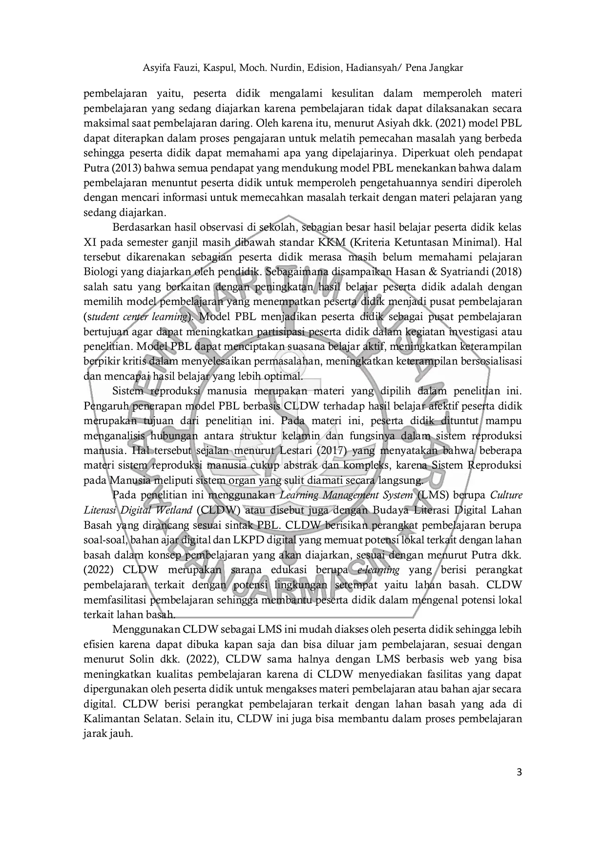 AMNUS BJMAMNUS BJM Hasil penelitian menunjukkan bahwa ada pengaruh penerapan aplikasi CLDW (Culture Literacy Digital Wetland) dalam pembelajaran konsep sistem pertahananHasil penelitian menunjukkan bahwa ada pengaruh penerapan aplikasi CLDW (Culture Literacy Digital Wetland) dalam pembelajaran konsep sistem pertahanan