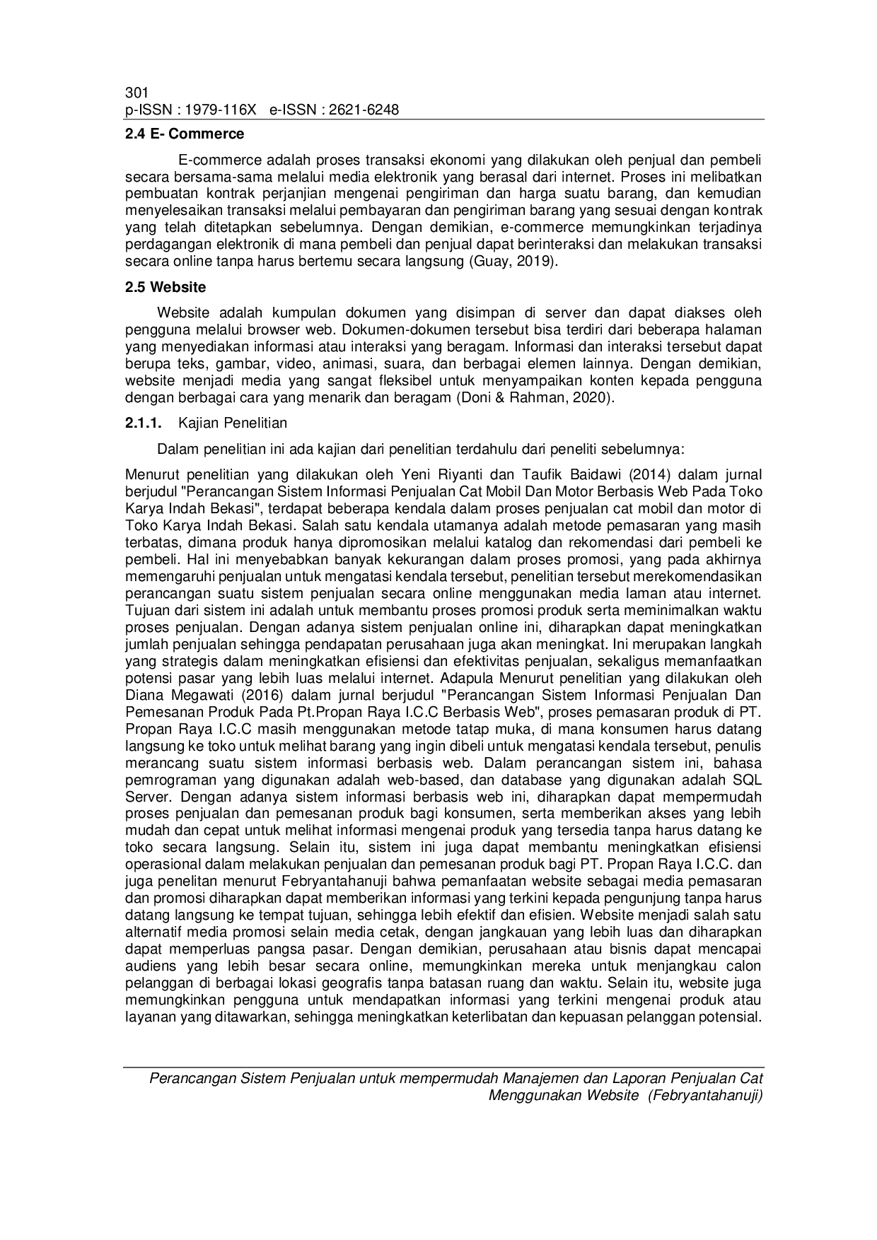 Perancangan e-commerce berbasis web mempermudah proses penjualan dan pemasaran produk.Dengan adanya platform e-commerce, toko memiliki kemampuan untuk menjangkau pelanggan lebih luas melalui internet.Pelanggan dapat dengan mudah mengakses toko secara online, melakukan pembelian, dan memperoleh informasi produk tanpa harus datang langsung ke toko fisik.Hal ini meningkatkan keterjangkauan dan kenyamanan pelanggan dalam berbelanja, serta membuka peluang baru untuk pertumbuhan bisnis.Perancangan sistem berbasis web juga membantu meningkatkan efisiensi dalam proses pencatatan dan pemesanan barang.Dengan adanya sistem ini, pengguna dapat dengan cepat dan mudah melakukan pencetakan pemesanan barang dengan hasil yang akurat.Hal ini membantu meminimalisir waktu yang diperlukan untuk pencatatan dan mengurangi risiko kesalahan pencatatan.Dengan demikian, toko dapat mengelola inventaris dengan lebih efisien dan meningkatkan kualitas layanan kepada pelanggan.