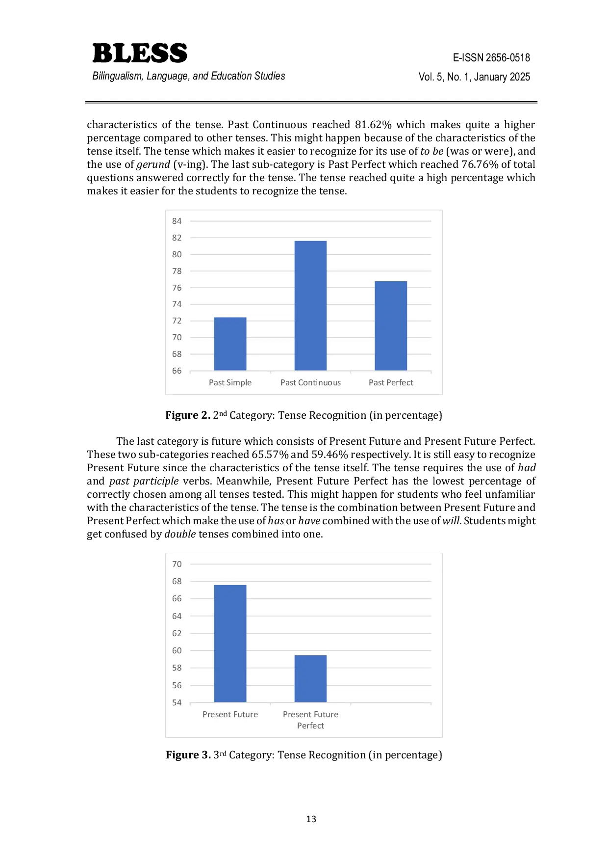 Further research could explore the effectiveness of incorporating more contextualized examples, particularly those relevant to students daily lives, to improve the recognition of more complex tenses like Present Future Perfect. Additionally, a comparative study examining the impact of explicit versus implicit instruction on tense mastery could provide valuable insights for pedagogical approaches. Finally, investigating the correlation between students proficiency in Bahasa Indonesia grammatical structures and their challenges with English tenses could reveal underlying linguistic interference patterns and inform targeted interventions to enhance English language learning outcomes. These investigations, building upon the current study, will contribute to a more nuanced understanding of the challenges Indonesian learners face and ultimately lead to more effective English language teaching strategies.
