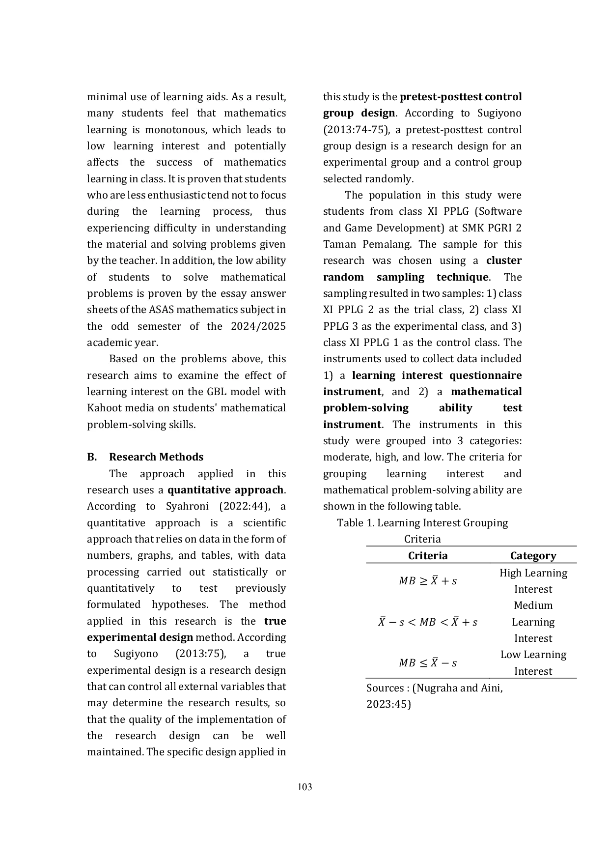 Berdasarkan hasil penelitian ini, disarankan untuk melakukan penelitian lebih lanjut dengan fokus pada pengembangan model pembelajaran yang inovatif dan menarik, seperti model Game Based Learning (GBL), untuk meningkatkan minat belajar siswa. Selain itu, penelitian juga dapat dilakukan untuk mengeksplorasi pengaruh media pembelajaran Kahoot terhadap minat belajar dan kemampuan pemecahan masalah matematis siswa. Penelitian lanjutan juga dapat dilakukan untuk menganalisis faktor-faktor lain yang mempengaruhi kemampuan pemecahan masalah matematis siswa, seperti motivasi belajar, lingkungan belajar, dan dukungan orang tua.
