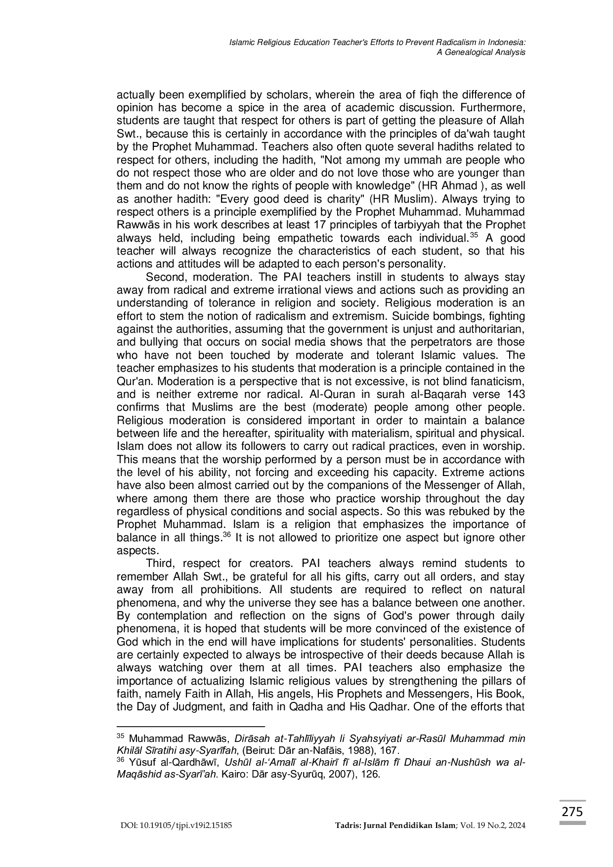 Further research should investigate the effectiveness of different pedagogical approaches in Islamic Religious Education in fostering critical thinking skills among students, enabling them to discern and reject radical ideologies. Additionally, studies could explore the role of family and community involvement in reinforcing the values of tolerance and moderation taught in schools, creating a more holistic approach to preventing radicalization. Finally, research is needed to examine the impact of social media and online platforms on the spread of radical ideas among youth and to develop strategies for countering extremist narratives in the digital space, potentially through the creation of positive counter-narratives and digital literacy programs. These investigations should consider the unique socio-cultural context of Indonesia and aim to provide practical recommendations for policymakers and educators to strengthen the resilience of young people against radicalization, fostering a more inclusive and peaceful society. A comprehensive understanding of these factors will contribute to the development of more effective and targeted interventions to address the complex challenge of religious extremism.