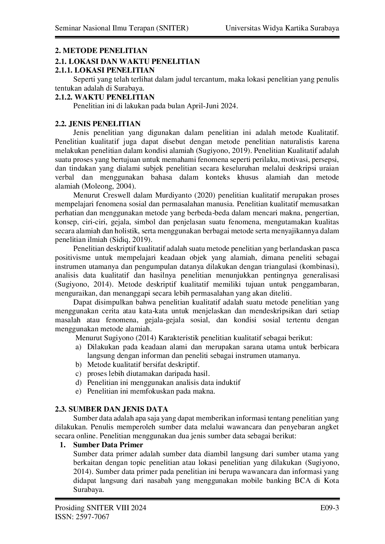 Seminar Nasional Ilmu TerapanSeminar Nasional Ilmu TerapanPesatnya perkembangan ilmu pengetahuan dan teknologi di era globalisasi telah membawa banyak inovasi baru di berbagai bidang, termasuk di bidang perbankan. Penelitian ini bertujuan untuk mengetahui perilaku konsumen terhadap penggunaan mobile banking BCA di Kota Surabaya. Metode penelitian yang digunakan yaitu deskriptif kualitatif. Teknik pengumpulan data yang digunakan yaitu melalui wawancara, observasi, dan dokumentasi kepada 10 narasumber terpilih yang memenuhi kriteria yang ditentukan oleh peneliti. Hasil wawancara dengan 10 informan mengungkapkan bahwa mobile banking BCA banyak digunakan oleh masyarakat, ATM BCA ada dimana-mana, pembayaran QRIS dapat digunakan di merchant manapun, fitur dan tampilan sederhana.