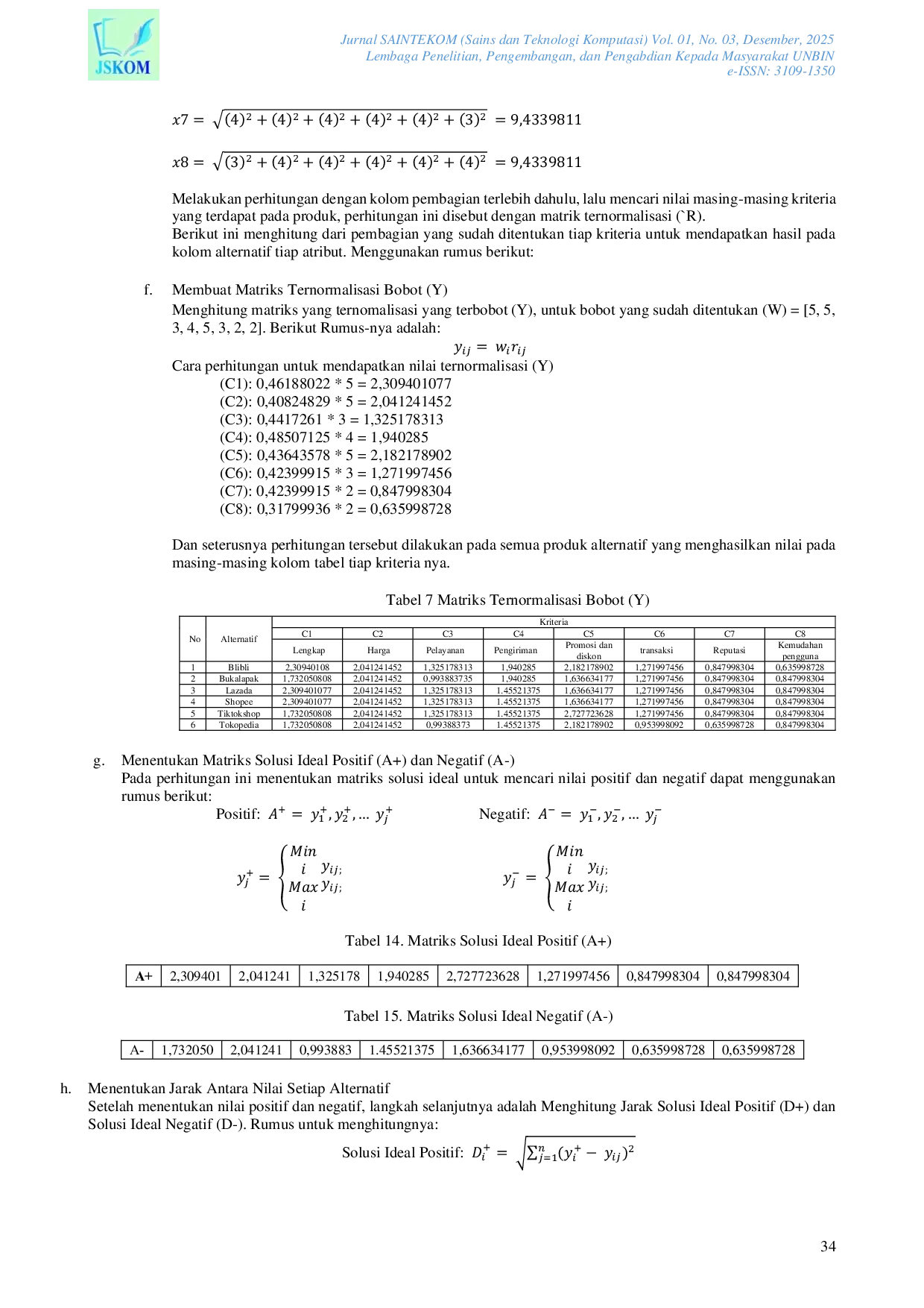- Penerapan Metode Topsis Untuk Rekomendasi Marketplace Yang Terbaik Dalam Berbelanja Elektronik Secara... ejournal-unbin.id/index.php/jskom/article/view/59Penerapan Metode Topsis Untuk Rekomendasi Marketplace Yang Terbaik Dalam Berbelanja Elektronik Secara ejournal unbin index php jskom article view 59