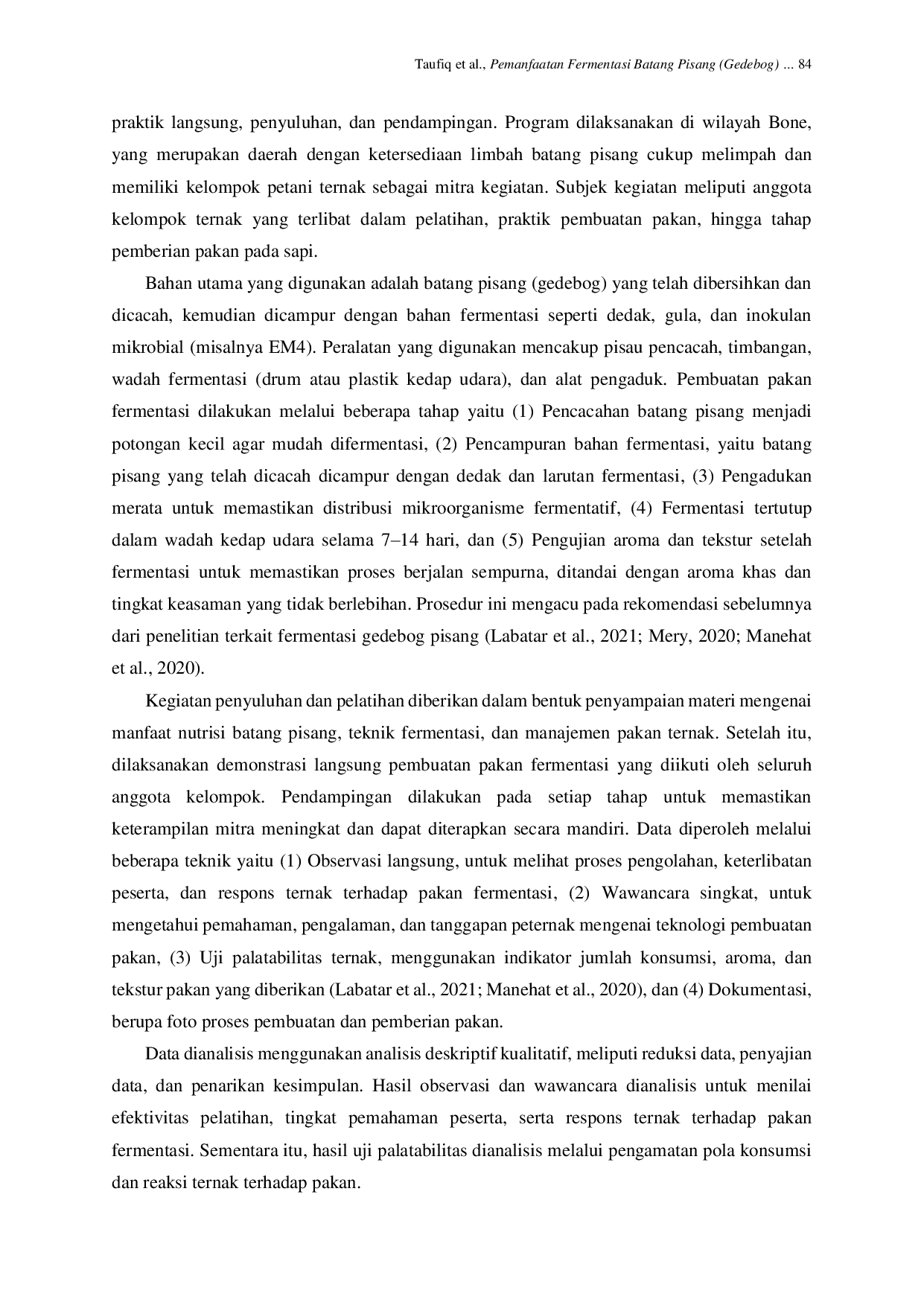 Pengolahan limbah batang pisang menjadi pakan ternak melalui fermentasi menghasilkan palatabilitas yang tinggi bagi sapi dengan aroma dan rasa yang khas.Peternak mampu memahami, mengadopsi, dan menerapkan teknologi pengolahan pakan ini secara mandiri.Penerapan teknologi ini dapat dilakukan secara berkelanjutan untuk mendukung penyediaan pakan berkualitas, terutama di musim kemarau.