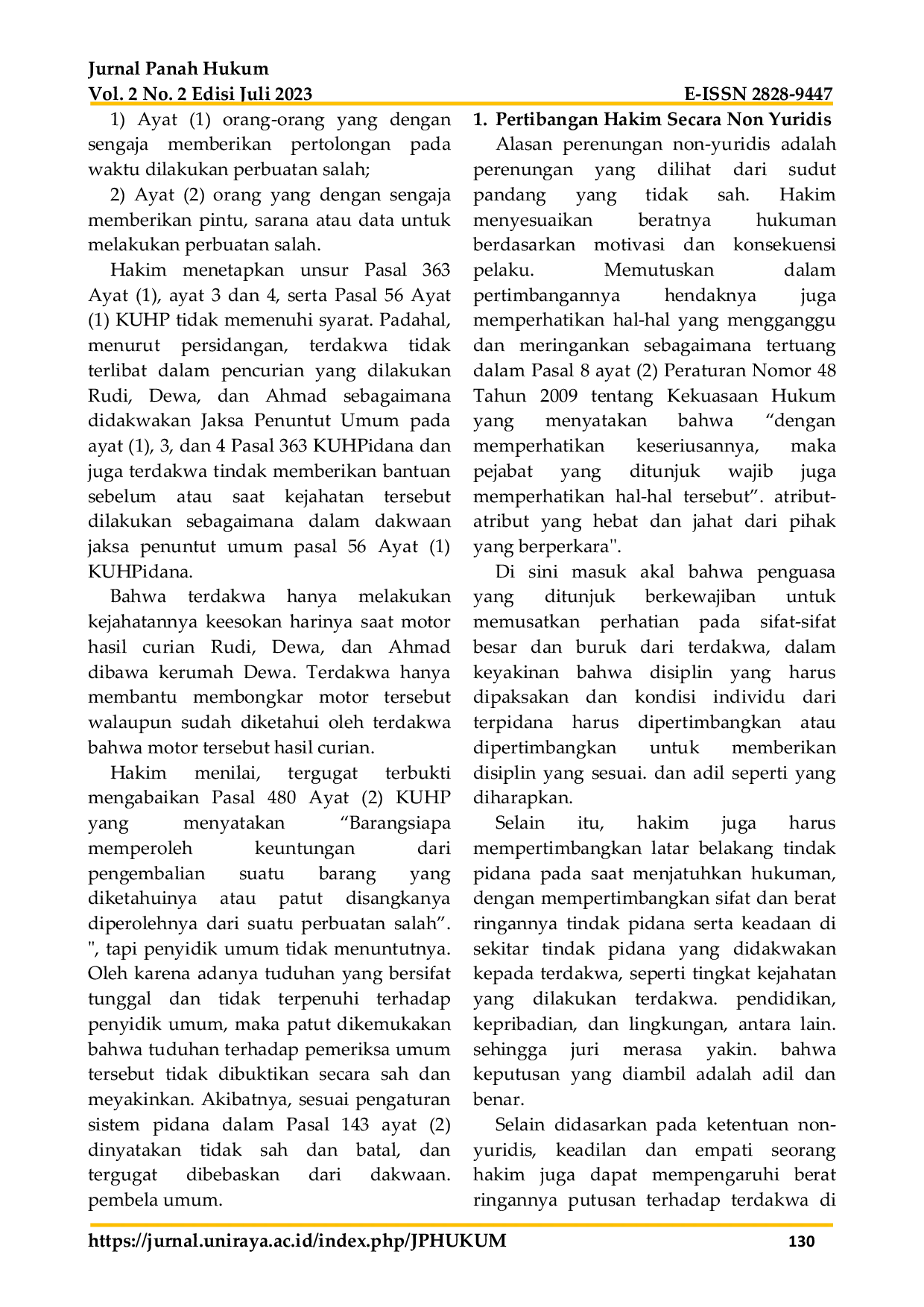 UNIRAYAUNIRAYA Hakim menggunakan pertimbangan hukum dan non hukum dalam mengambil keputusan. Dalam putusan ini, terdakwa mengandalkan teori pemidanaan yang dikenal denganHakim menggunakan pertimbangan hukum dan non hukum dalam mengambil keputusan. Dalam putusan ini, terdakwa mengandalkan teori pemidanaan yang dikenal dengan