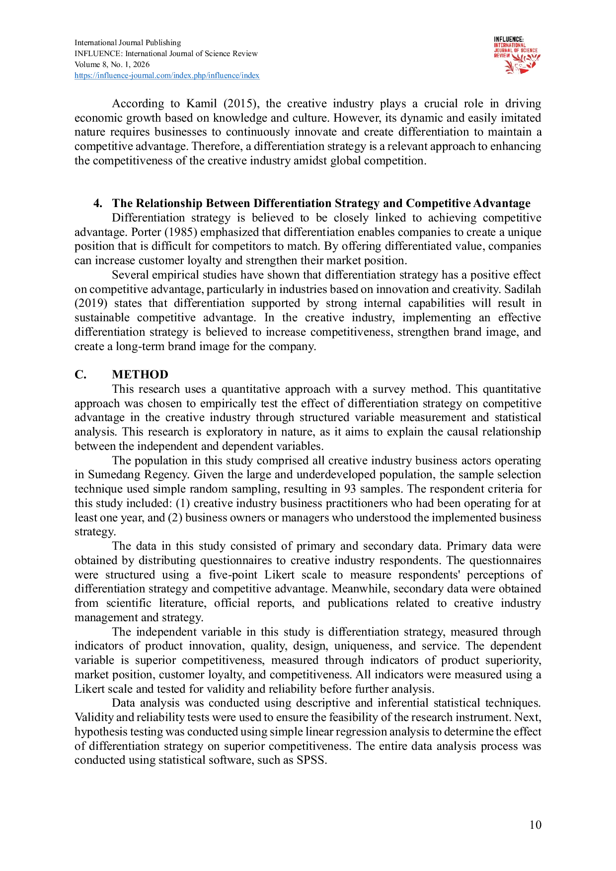 Further research should explore the moderating role of organizational culture on the relationship between differentiation strategy and competitive advantage, as a supportive culture can amplify the benefits of differentiation. Additionally, investigating the impact of digital technologies and platforms on the implementation of differentiation strategies within the creative industry is crucial, considering the increasing importance of online channels. Finally, a longitudinal study tracking the long-term effects of differentiation strategies on the sustainability and growth of creative businesses would provide valuable insights, particularly in the context of rapidly evolving market trends and consumer preferences. These studies should consider the specific challenges and opportunities faced by creative industries, such as intellectual property protection, talent acquisition, and the need for continuous innovation, to provide actionable recommendations for practitioners and policymakers. The combined insights from these research directions will contribute to a more comprehensive understanding of how creative industries can leverage differentiation strategies to achieve lasting success in a competitive landscape.