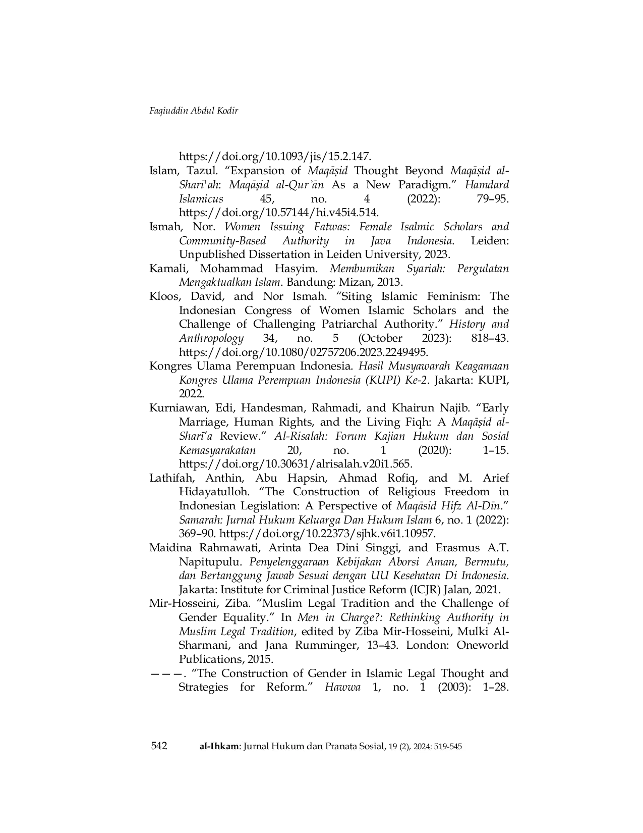 - WOMEN’S MAJELIS TAKLIM AND THE GRADUAL MOVE TOWARD GENDER EQUALITY | Fadillah | JOURNAL OF INDONESIAN... doi.org/10.15642/JIIS.2023.17.1.100-123WOMENAoS MAJELIS TAKLIM AND THE GRADUAL MOVE TOWARD GENDER EQUALITY Fadillah JOURNAL OF INDONESIAN doi 10 15642 JIIS 2023 17 1 100 123