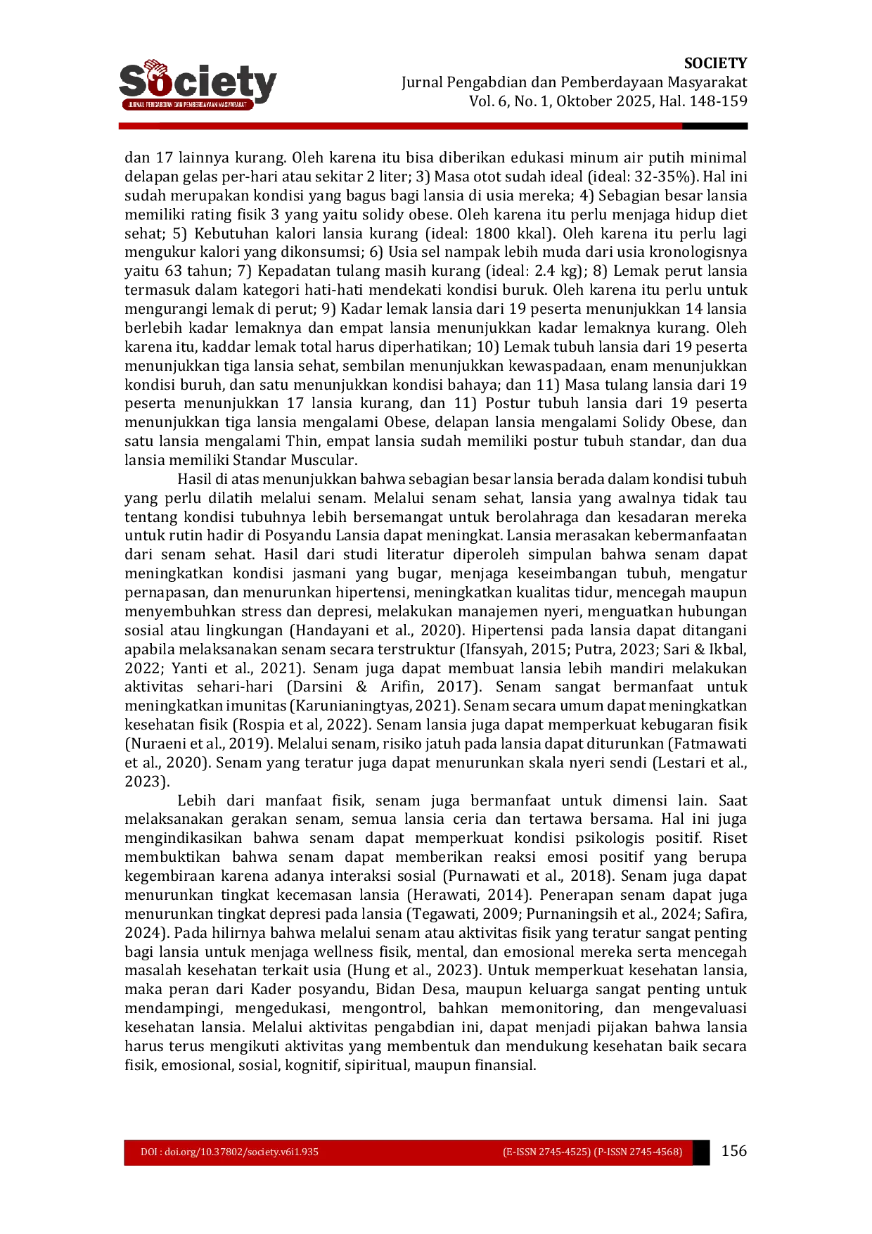 - PEMBERDAYAAN LANSIA MELALUI SENAM LANSIA SEBAGAI UPAYA MENINGKATKAN KESEHATAN FISIK DALAM MENDUKUNG LANSIA... doi.org/10.31764/jpmb.v6i4.11702PEMBERDAYAAN LANSIA MELALUI SENAM LANSIA SEBAGAI UPAYA MENINGKATKAN KESEHATAN FISIK DALAM MENDUKUNG LANSIA doi 10 31764 jpmb v6i4 11702