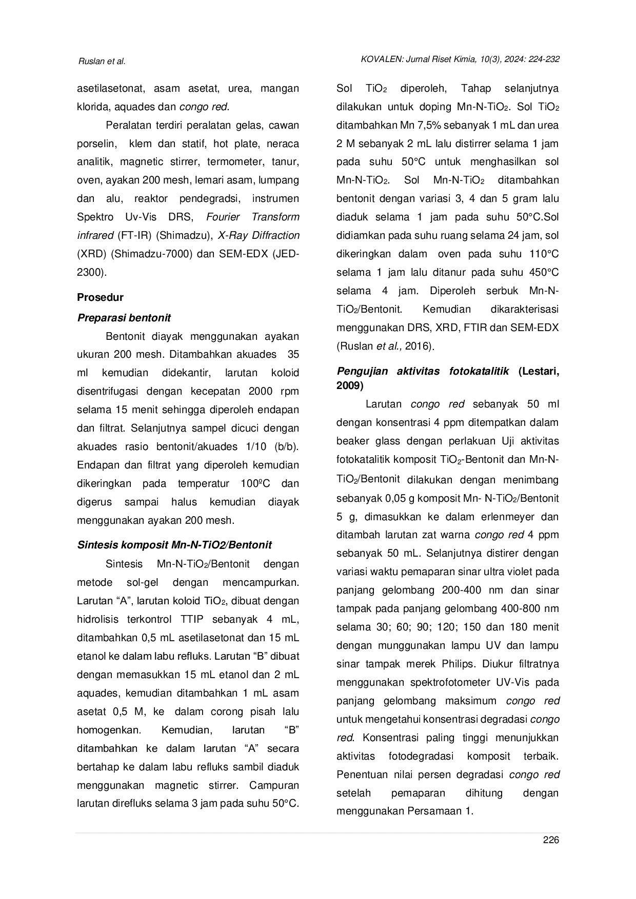 - Sintesis dan Karakterisasi Komposit Mn-N-TiO2/Bentonit untuk Degradasi Polutan Organik | KOVALEN: Jurnal... doi.org/10.22487/kovalen.2024.v10.i3.17502Sintesis dan Karakterisasi Komposit Mn N TiO2 Bentonit untuk Degradasi Polutan Organik KOVALEN Jurnal doi 10 22487 kovalen 2024 v10 i3 17502