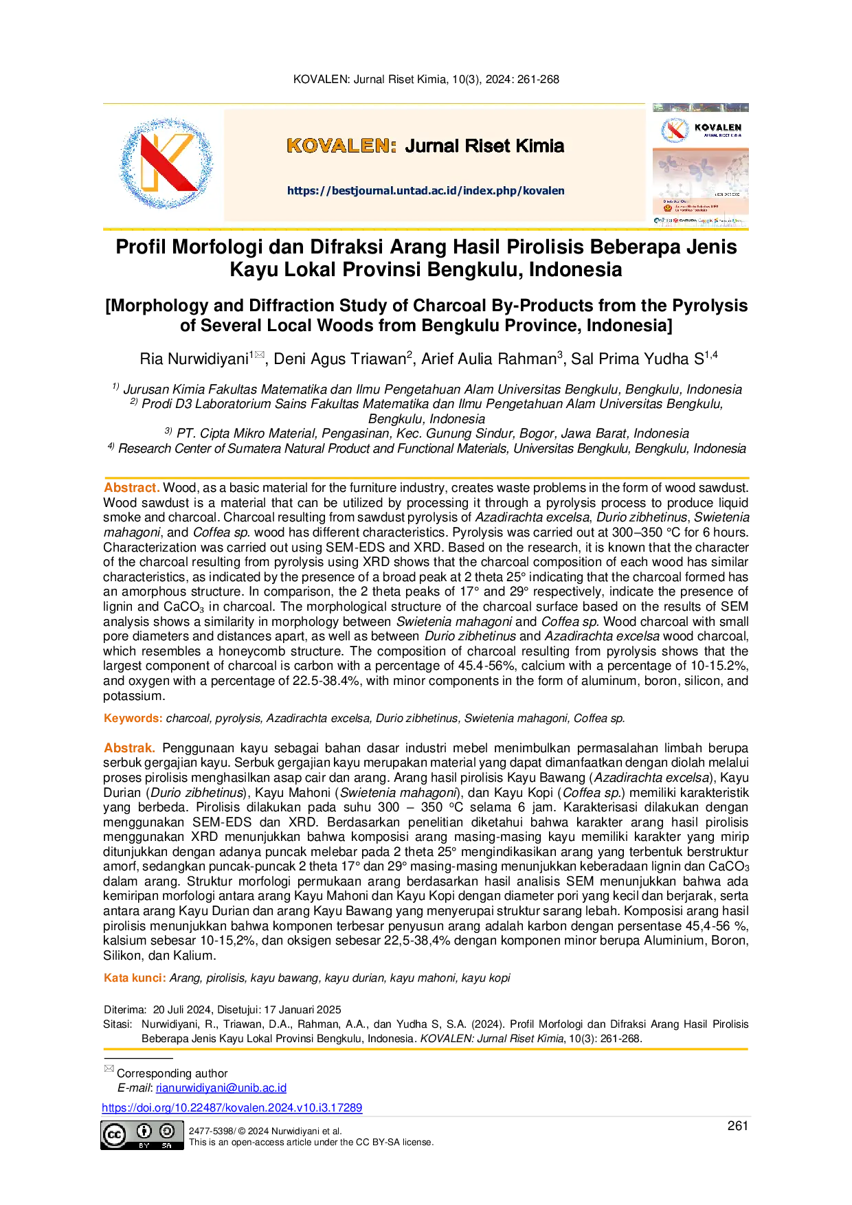 - Profil Morfologi dan Difraksi Arang Hasil Pirolisis Beberapa Jenis Kayu Lokal Provinsi Bengkulu, Indonesia... bestjournal.untad.ac.id/index.php/kovalen/article/view/17289Profil Morfologi dan Difraksi Arang Hasil Pirolisis Beberapa Jenis Kayu Lokal Provinsi Bengkulu Indonesia bestjournal untad ac index php kovalen article view 17289