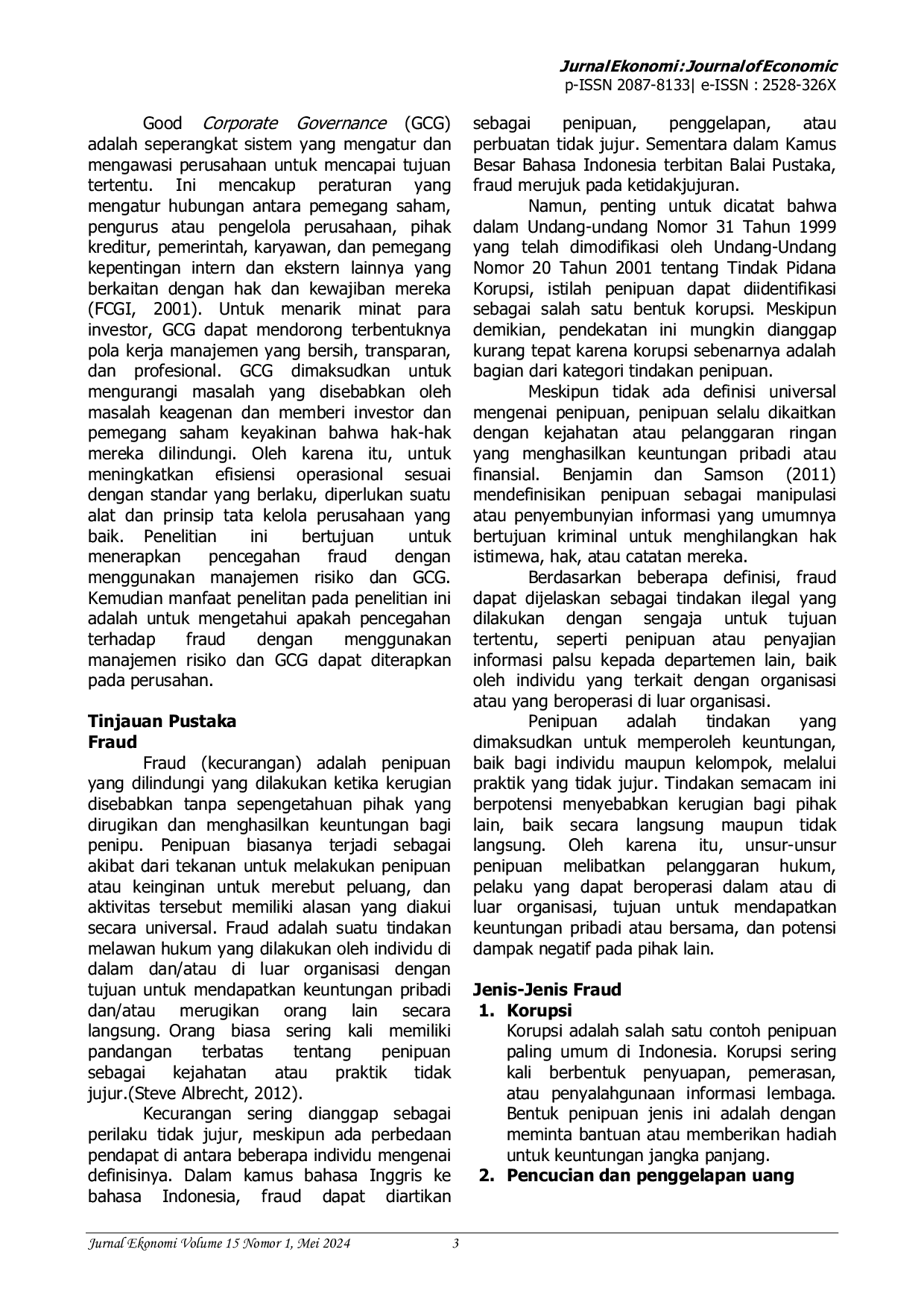 Pencegahan fraud yang proaktif memerlukan penerapan manajemen risiko dan tata kelola perusahaan yang baik, serta budaya etika internal dalam organisasi.Pelatihan lebih lanjut bagi auditor diperlukan untuk meningkatkan kemampuan dalam mengenali motif dan tanda-tanda penipuan secara dini.Manajemen risiko memiliki peran penting dalam mendeteksi dan mencegah fraud, namun masih terdapat kesenjangan dalam penerapannya yang perlu dikembangkan melalui model yang lebih proaktif.