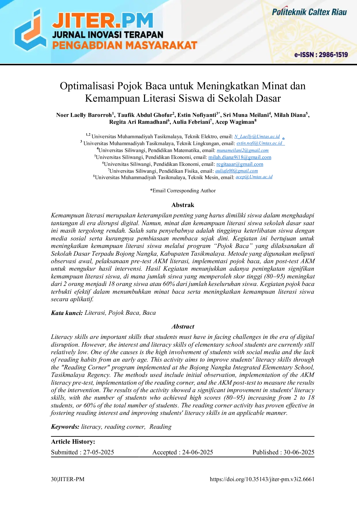 - Optimalisasi Pojok Baca untuk Meningkatkan Minat dan Kemampuan Literasi Siswa di Sekolah Dasar | JITER-PM... doi.org/10.35143/jiter-pm.v3i2.6661Optimalisasi Pojok Baca untuk Meningkatkan Minat dan Kemampuan Literasi Siswa di Sekolah Dasar JITER PM doi 10 35143 jiter pm v3i2 6661