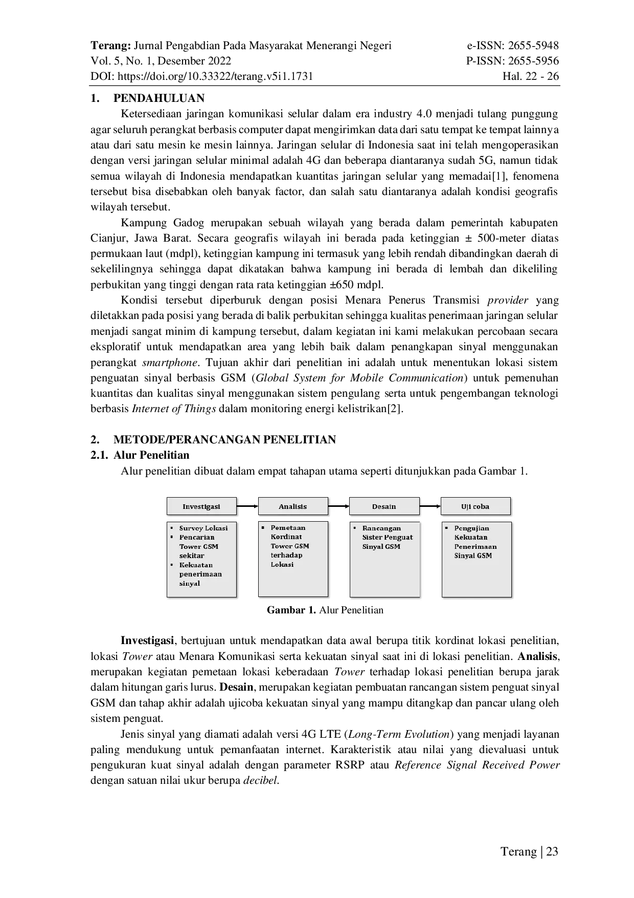TERANGTERANGKehadiran teknologi Global System for Mobile memberikan peluang pengembangan teknologi informasi dan komunikasi ke arah otomasi yang lebih bernilai. Salah satu manfaat yang menjadi tulang punggung untuk mendukung aktivitas komunikasi saat ini adalah akses internet berkecepatan tinggi yang sudah sampai pada versi 4G. Namun, peningkatan versi tersebut tidak semerta-merta merata pada seluruh wilayah di Indonesia, Kampung Gadog yang terletak di wilayah Cianjur Barat merupakan salah satu wilayah yang bisa disebut daerah terisolir dari sinyal telekomunikasi GSM, hal ini disebabkan oleh topologi wilayah yang berada di antara perbukitan. Oleh sebab itu, sistem penguatan sinyal GSM diperlukan untuk mendukung penggunaan telekomunikasi berbasis GSM dan penggunaan internet sebagai gerbang eksplorasi informasi.