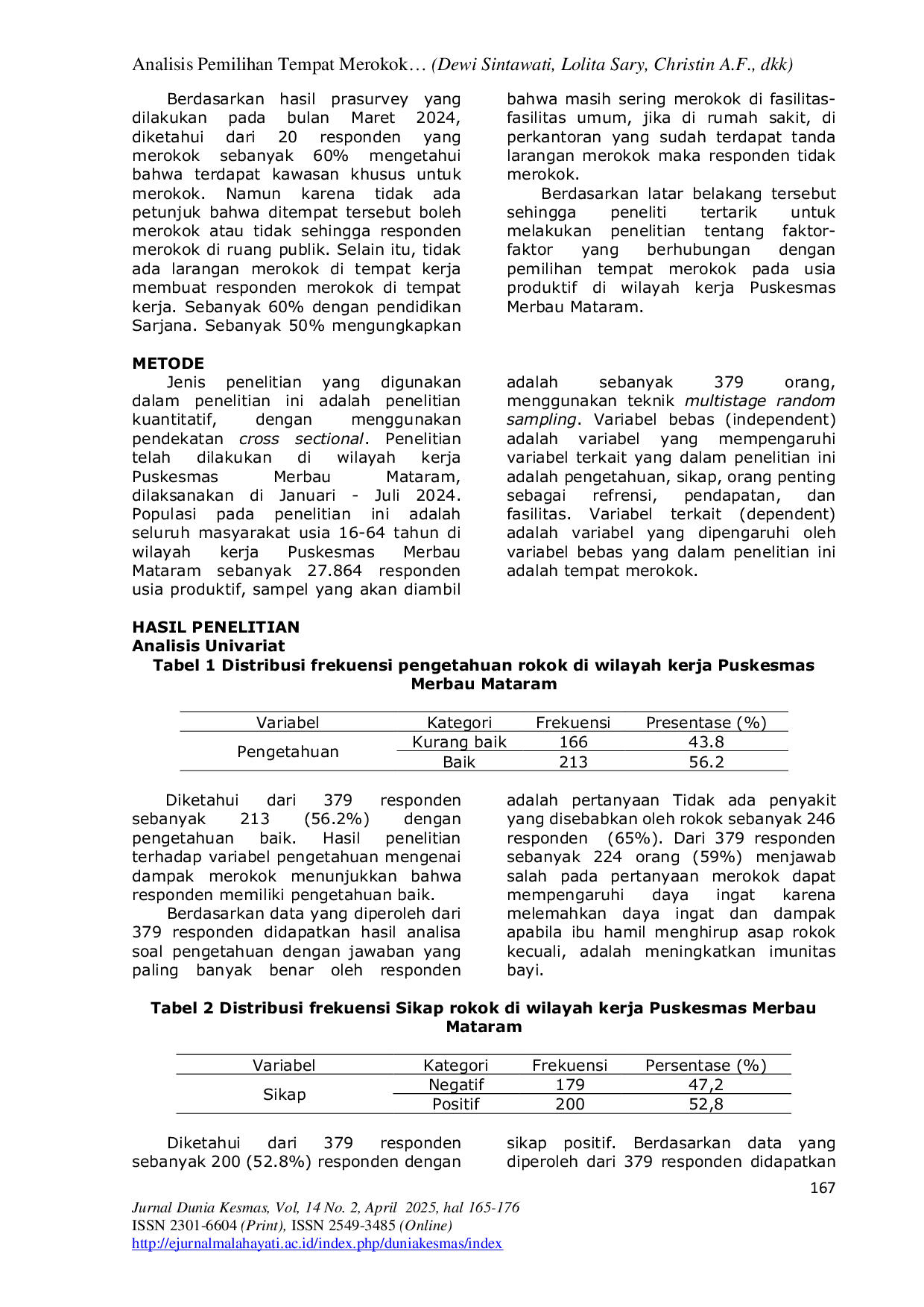 UNISMUH PALUUNISMUH PALU Pengumpulan data dilakukan menggunakan kuisioner penelitian dan analisis data menggunakan uji Chi-Square. Hasil menunjukkan bahwa pengetahuan (p = 0,001),Pengumpulan data dilakukan menggunakan kuisioner penelitian dan analisis data menggunakan uji Chi-Square. Hasil menunjukkan bahwa pengetahuan (p = 0,001),
