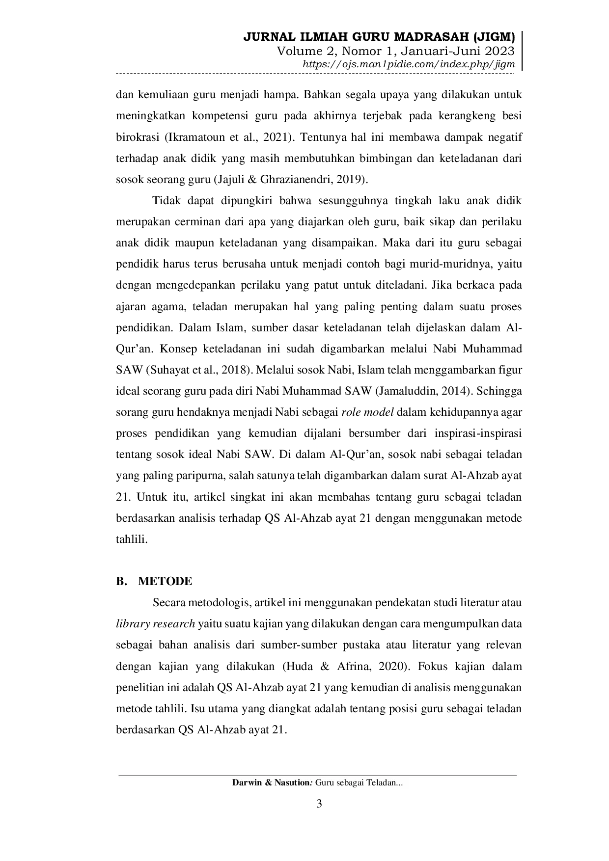 - Rasulullaah Sebagai Role Model Bagi Pendidik (Kajian Terhadap Al-Qur’an Surah Al-Ahzab Ayat 21)... jurnal.staisumatera-medan.ac.id/index.php/fitrah/article/view/9Rasulullaah Sebagai Role Model Bagi Pendidik Kajian Terhadap Al QurAoan Surah Al Ahzab Ayat 21 jurnal staisumatera medan ac index php fitrah article view 9