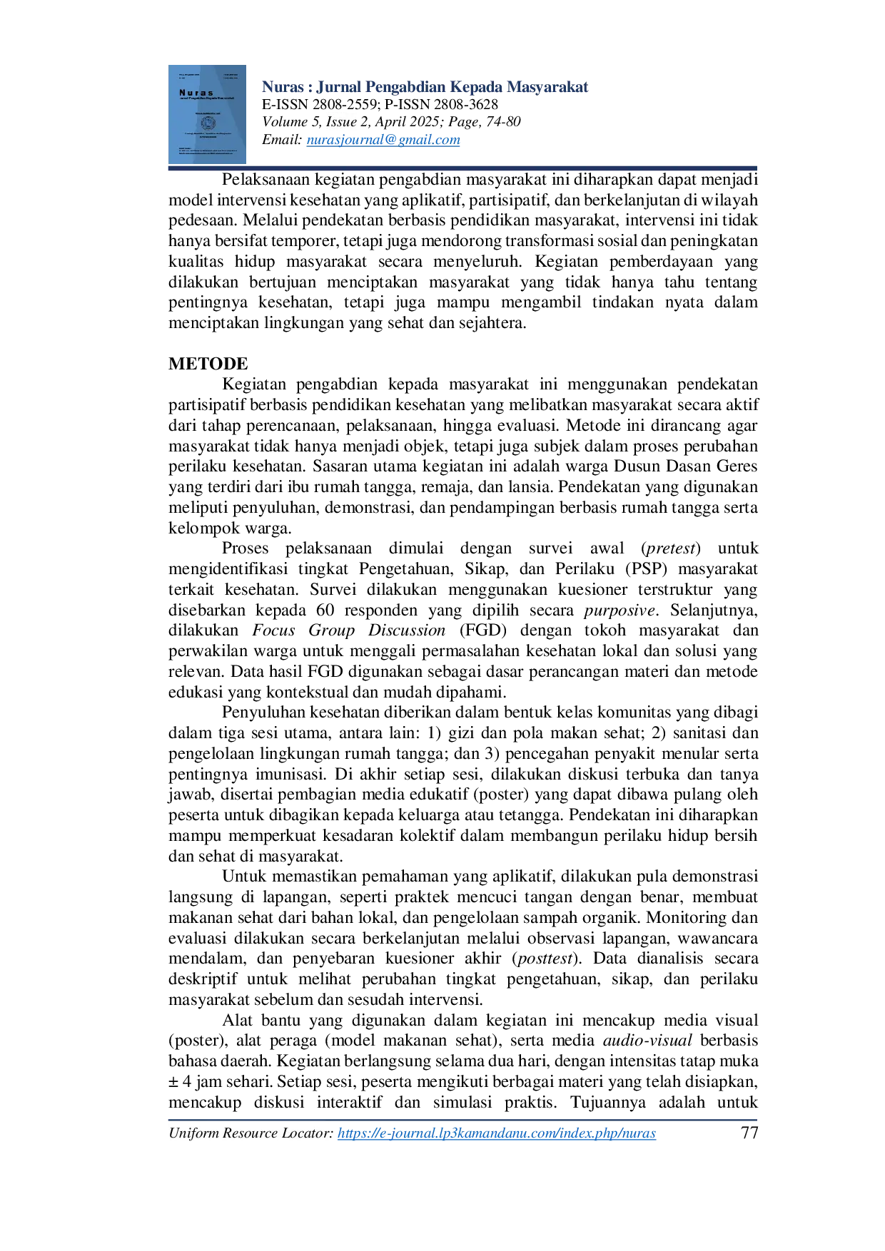 - Pemberdayaan Masyarakat Berbasis Pendidikan Kesehatan di Dusun Dasan Geres Kabupaten Lombok Barat | Nuras... doi.org/10.36312/nuras.v5i2.371Pemberdayaan Masyarakat Berbasis Pendidikan Kesehatan di Dusun Dasan Geres Kabupaten Lombok Barat Nuras doi 10 36312 nuras v5i2 371