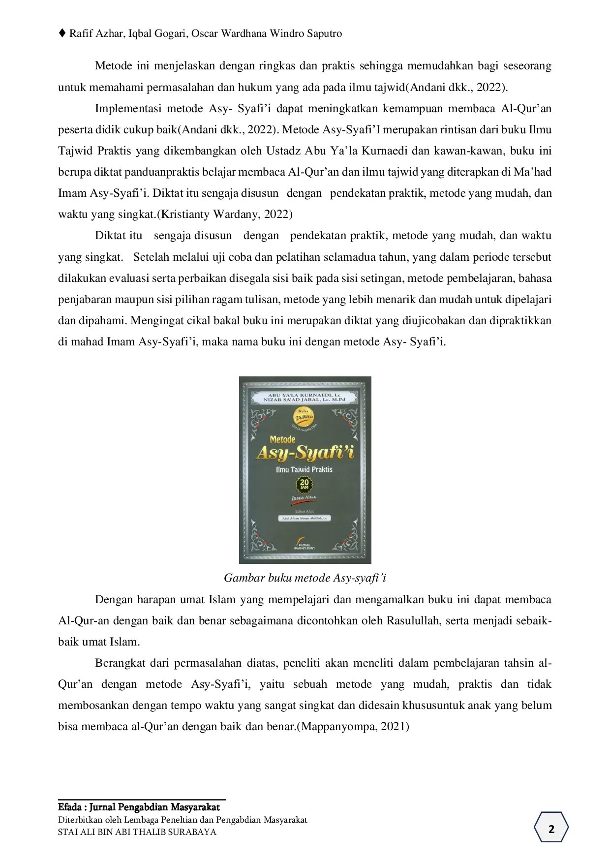 - Peningkatan Mutu Guru TPA Masjid Al-Ikhlas Plumbungan Desa Putat dengan Metode Asy-Syafi’i | Efada... doi.org/10.54214/efada.Vol1.Iss1.700Peningkatan Mutu Guru TPA Masjid Al Ikhlas Plumbungan Desa Putat dengan Metode Asy SyafiAoi Efada doi 10 54214 efada Vol1 Iss1 700
