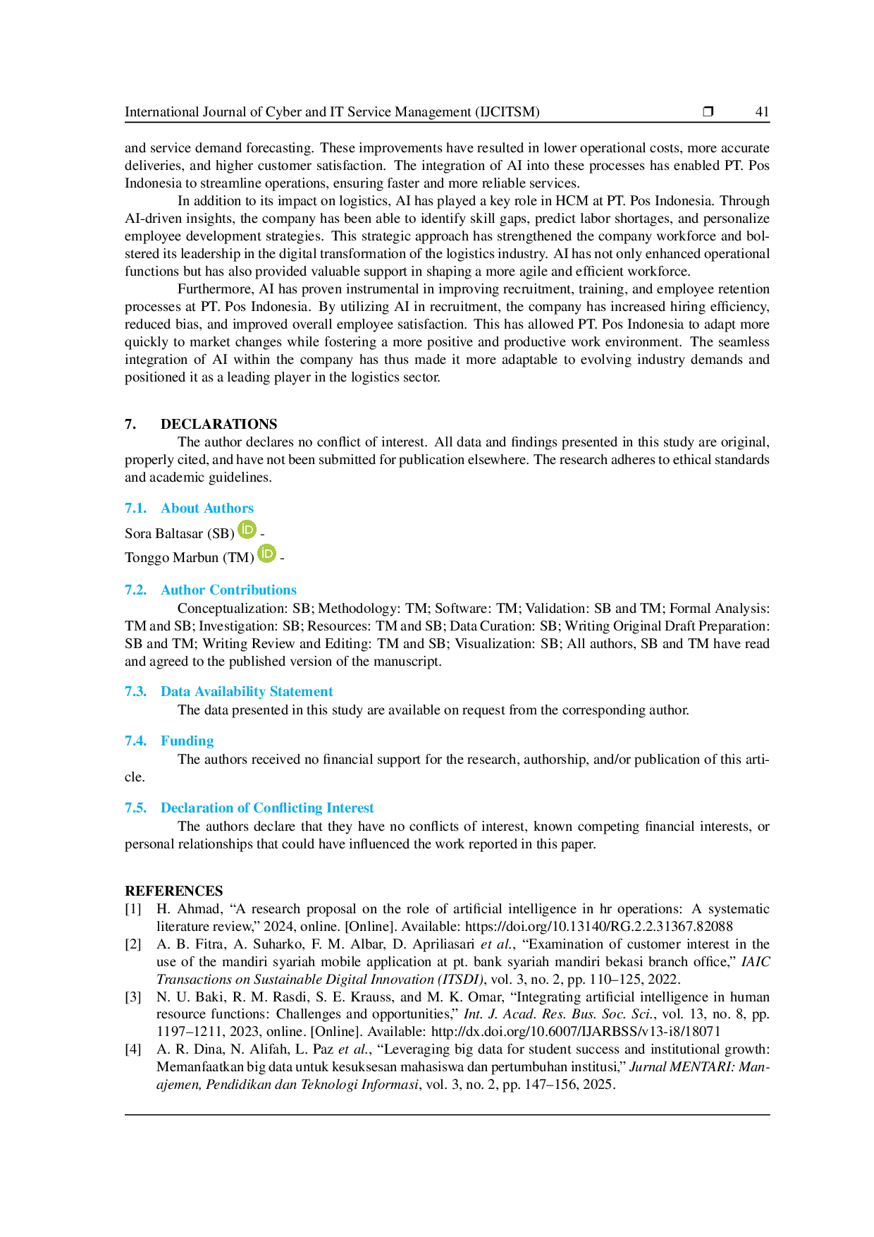 - The Role of Artificial Intelligence in Human Capital Management: A Review at PT. Pos Indonesia | International... doi.org/10.34306/ijcitsm.v5i1.175The Role of Artificial Intelligence in Human Capital Management A Review at PT Pos Indonesia International doi 10 34306 ijcitsm v5i1 175