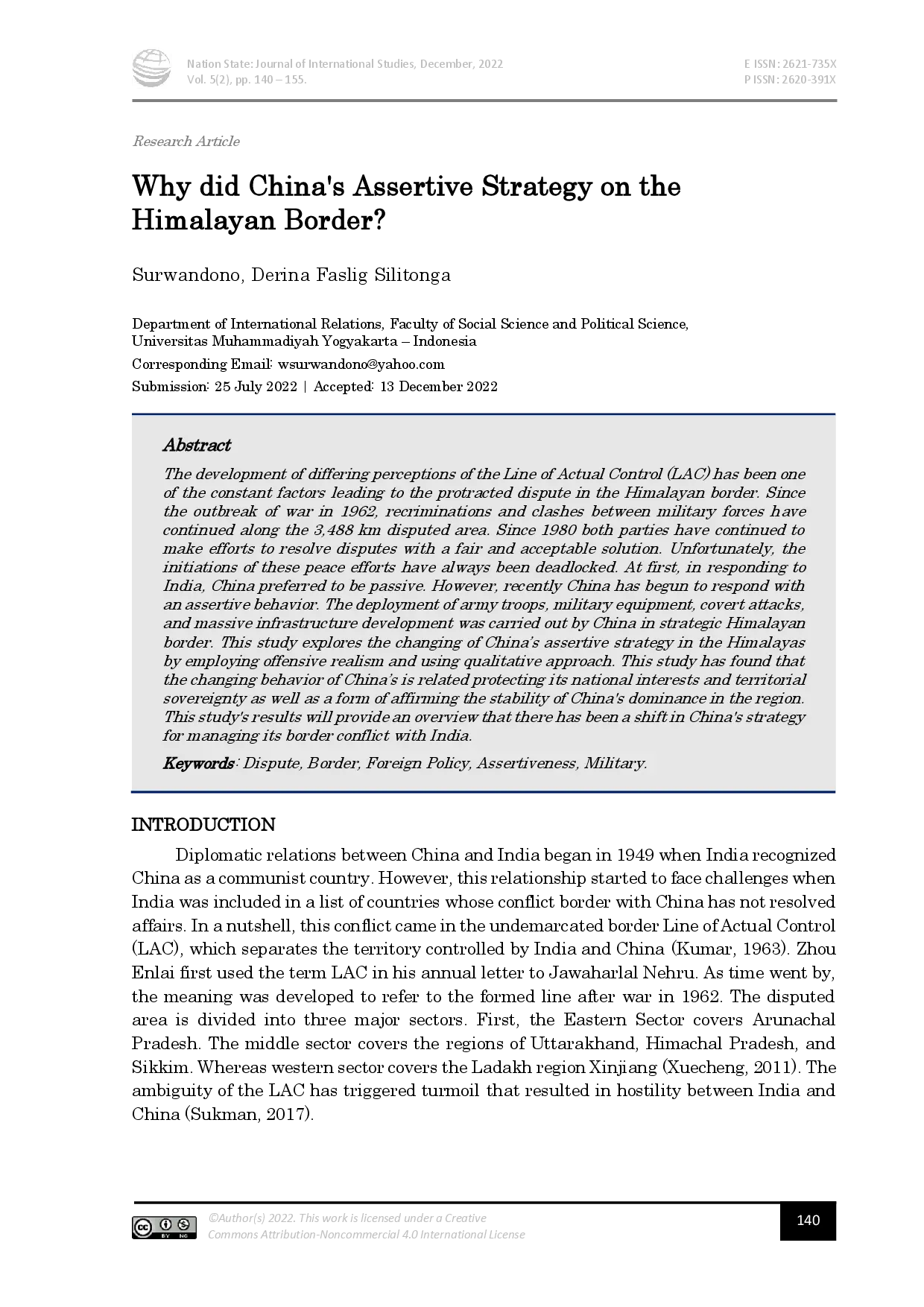 - Why Did China's Assertive Strategy on the Himalayan Border? | Nation State: Journal of International... jurnal.amikom.ac.id/index.php/nsjis/article/view/820Why Did Chinas Assertive Strategy on the Himalayan Border Nation State Journal of International jurnal amikom ac index php nsjis article view 820