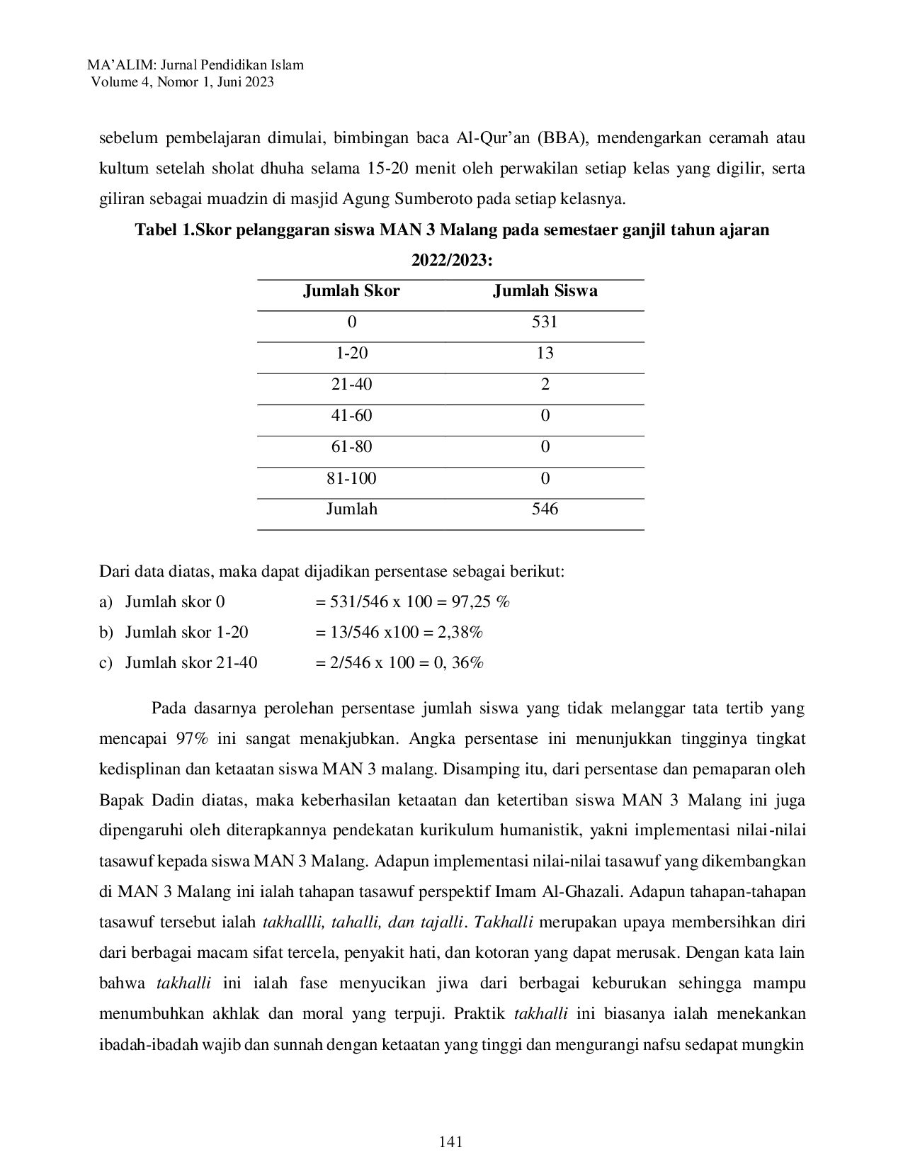 MA'ALIM: Jurnal Pendidikan IslamMA'ALIM: Jurnal Pendidikan IslamArtikel ini menjelaskan tentang penerapan model evaluasi kurikulum Atkinson di MAN 3 Malang. Setiap visi dan misi sekolah pasti bertujuan untuk kebaikan siswa sebagaimana cita-cita dan tujuan pendidikan nasional yang tercantum dalam UUD NRI 1945 dan UU Nomor 20 Tahun 2003 tentang Sistem Pendidikan Nasional. Pada dasarnya inti dari cita-cita dan tujuan nasional Indonesia sebagaimana dalam kedua peraturan tersebut ialah untuk membentuk insan yang intelektual, beriman kepada Tuhan, dan mempunyai perilaku yang baik. Namun berkembangnya kasus-kasus dewasa ini seperti penganiayaan, bullying, dan lain-lain yang dilakukan oleh para siswa menunjukkan bahwa visi dan misi sekolah tersebut dinyatakan tidak berhasil. Dengan demikian, maka sangat dibutuhkan evaluasi kurikulum pendidikan untuk memperbaiki ke arah lebih baik. Adapun model evaluasi yang sangat tepat dalam hal ini ialah model evaluasi pendidikan Atkinson. Model evaluasi ini memiliki objek penelitian yang fokus pada 3 domain, yakni problematika perencanaan sekolah, proses pembelajaran, dan perilaku atau karakter peserta didik.