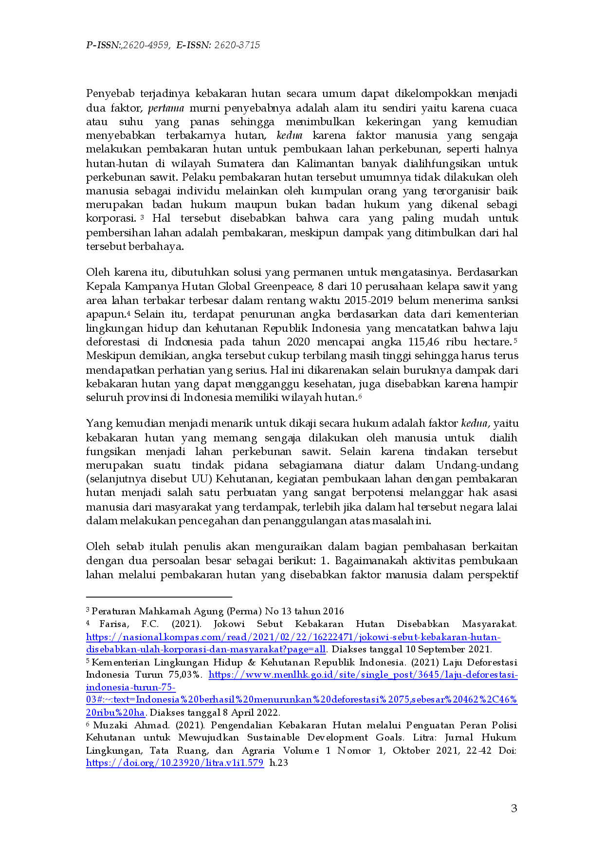 - PENGENDALIAN KEBAKARAN HUTAN MELALUI PENGUATAN PERAN POLISI KEHUTANAN UNTUK MEWUJUDKAN SUSTAINABLE DEVELOPMENT... doi.org/10.23920/litra.v1i1.579PENGENDALIAN KEBAKARAN HUTAN MELALUI PENGUATAN PERAN POLISI KEHUTANAN UNTUK MEWUJUDKAN SUSTAINABLE DEVELOPMENT doi 10 23920 litra v1i1 579