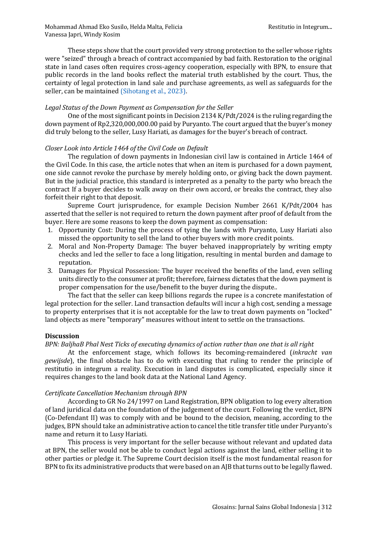 - Restitutio in Integrum in the Cancellation of Land Sale and Purchase Deeds Due to Wanprestasi (Breach... glosains.staiku.ac.id/index.php/Glosains/article/view/656Restitutio in Integrum in the Cancellation of Land Sale and Purchase Deeds Due to Wanprestasi Breach glosains staiku ac index php Glosains article view 656