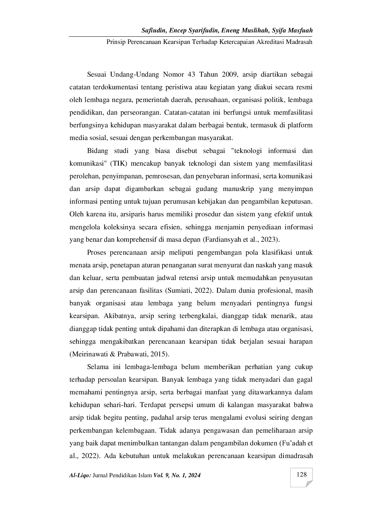 - Prinsip Perencanaan Kearsipan terhadap Ketercapaian Akreditasi Madrasah | Al-Liqo: Jurnal Pendidikan... ejournal.stai-tbh.ac.id/al-liqo/article/view/1304Prinsip Perencanaan Kearsipan terhadap Ketercapaian Akreditasi Madrasah Al Liqo Jurnal Pendidikan ejournal stai tbh ac al liqo article view 1304