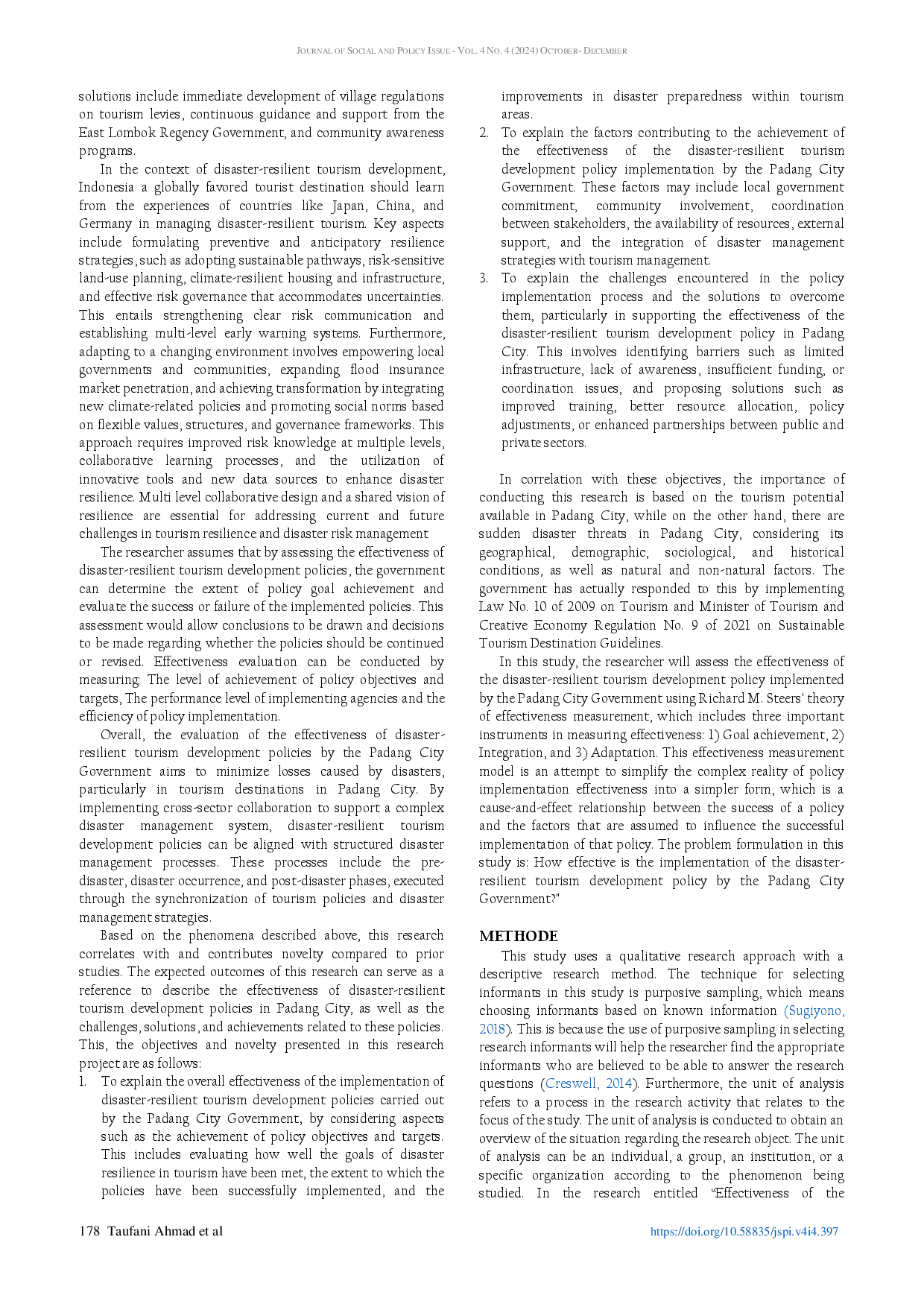 - The Effectiveness of Policy Implementation for the Development of Disaster-Resilient Tourism by the Padang... journal.pencerah.org/index.php/jspi/article/view/397The Effectiveness of Policy Implementation for the Development of Disaster Resilient Tourism by the Padang journal pencerah index php jspi article view 397