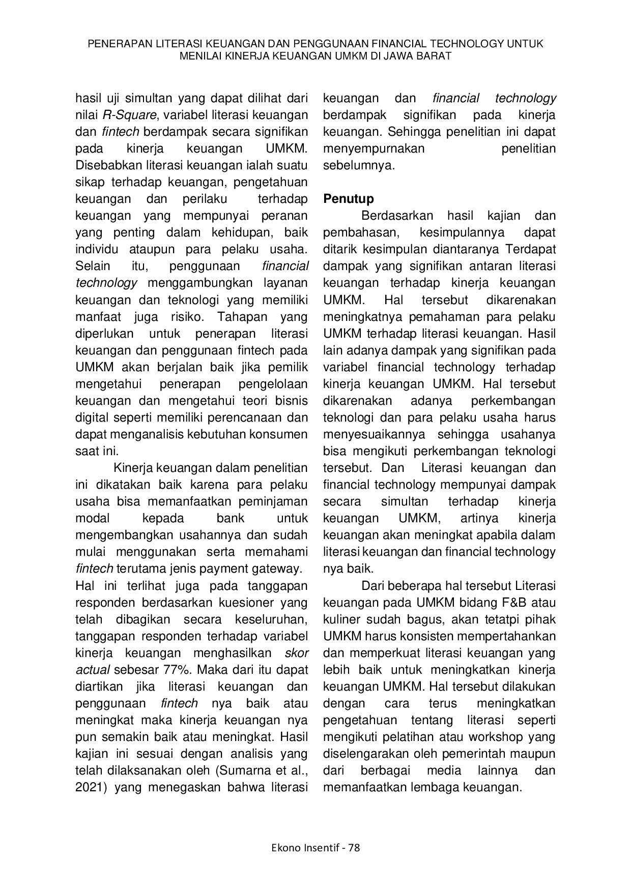 - PENERAPAN LITERASI KEUANGAN DAN PENGGUNAAN FINANCIAL TECHNOLOGY UNTUK MENILAI KINERJA KEUANGAN UMKM DI... doi.org/10.36787/jei.v16i2.887PENERAPAN LITERASI KEUANGAN DAN PENGGUNAAN FINANCIAL TECHNOLOGY UNTUK MENILAI KINERJA KEUANGAN UMKM DI doi 10 36787 jei v16i2 887