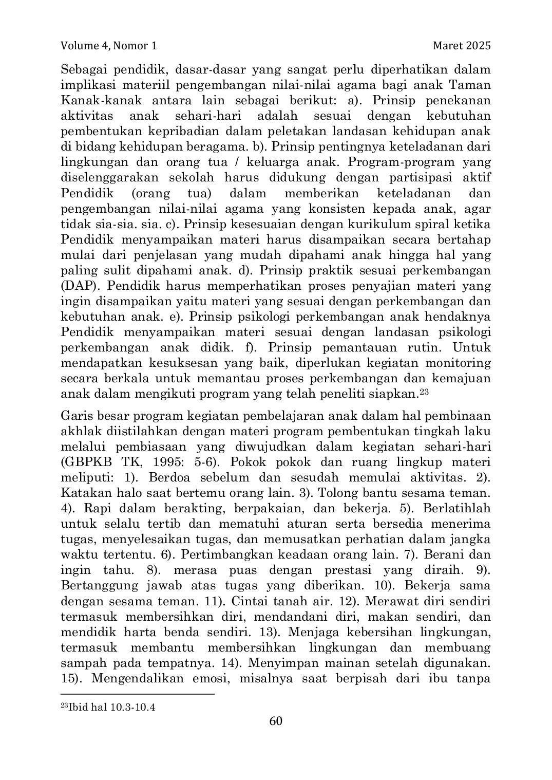 Penelitian lanjutan perlu mengeksplorasi bagaimana teknologi pendidikan digital dapat diterapkan untuk memperkuat pengembangan moral pada anak usia dini melalui media interaktif. Selain itu, perlu dilakukan studi tentang efektivitas kolaborasi antara pendidik, orang tua, dan komunitas dalam menciptakan lingkungan pendidikan yang konsisten untuk menanamkan nilai-nilai agama. Penelitian juga dapat membandingkan dampak berbagai pendekatan pedagogis (seperti pendekatan kontekstual vs tradisional) terhadap pembentukan karakter moral di berbagai wilayah budaya Indonesia.