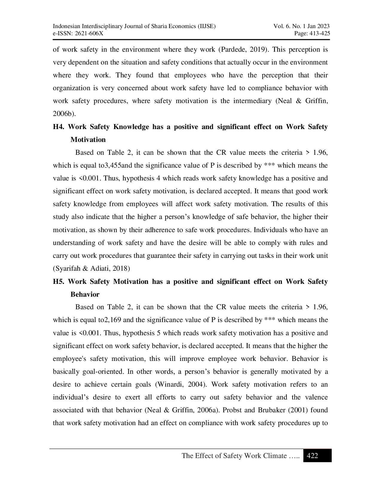 Iklim keselamatan kerja berpengaruh positif terhadap perilaku keselamatan kerja dan motivasi keselamatan kerja.Pengetahuan keselamatan kerja berpengaruh positif terhadap perilaku dan motivasi keselamatan kerja.Motivasi keselamatan kerja memperkuat pengaruh iklim dan pengetahuan keselamatan kerja terhadap perilaku keselamatan kerja secara signifikan.