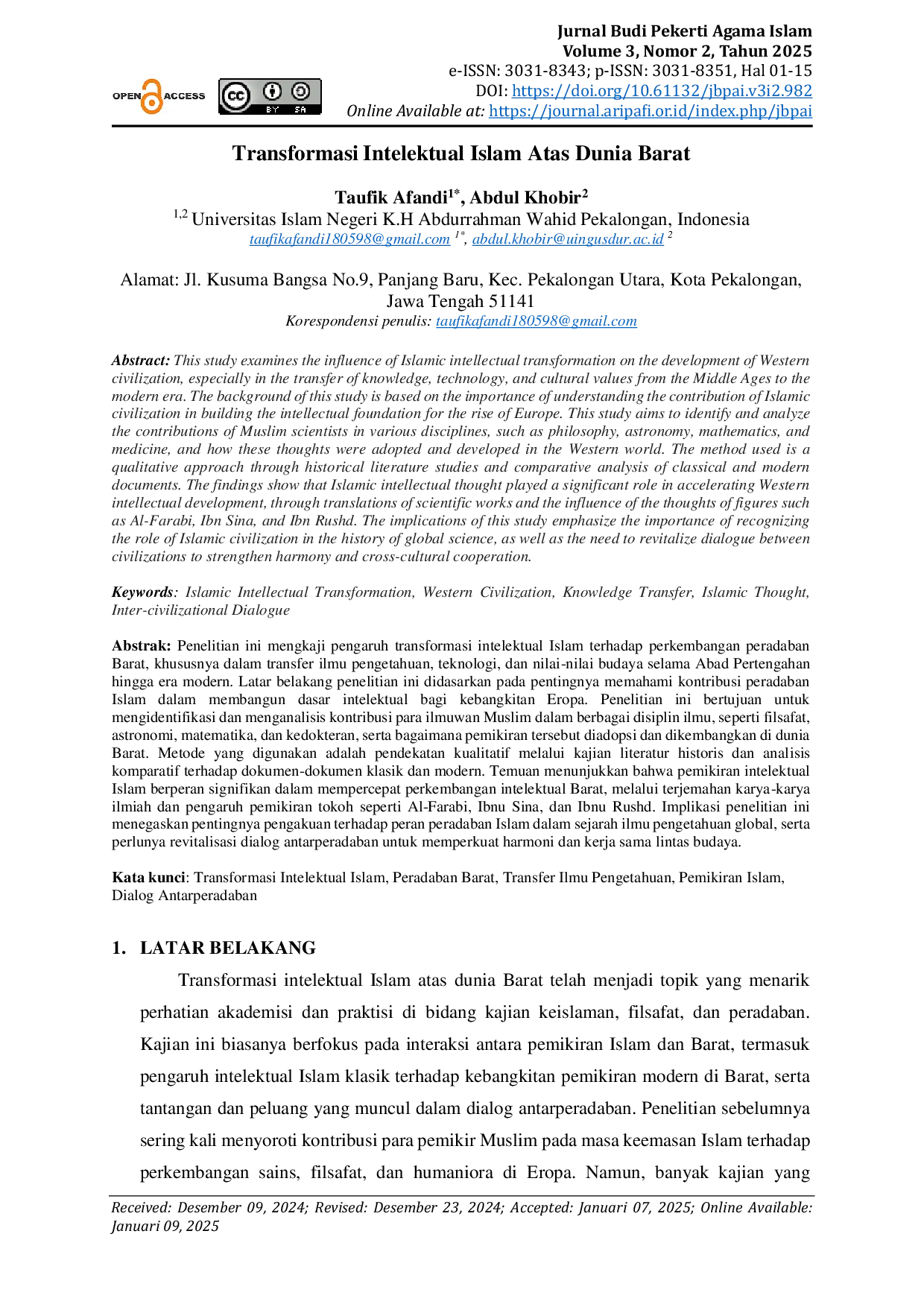 - Transformasi Intelektual Islam Atas Dunia Barat | Jurnal Budi Pekerti Agama Islam. transformasi intelektual... doi.org/10.61132/jbpai.v3i2.982Transformasi Intelektual Islam Atas Dunia Barat Jurnal Budi Pekerti Agama Islam transformasi intelektual doi 10 61132 jbpai v3i2 982