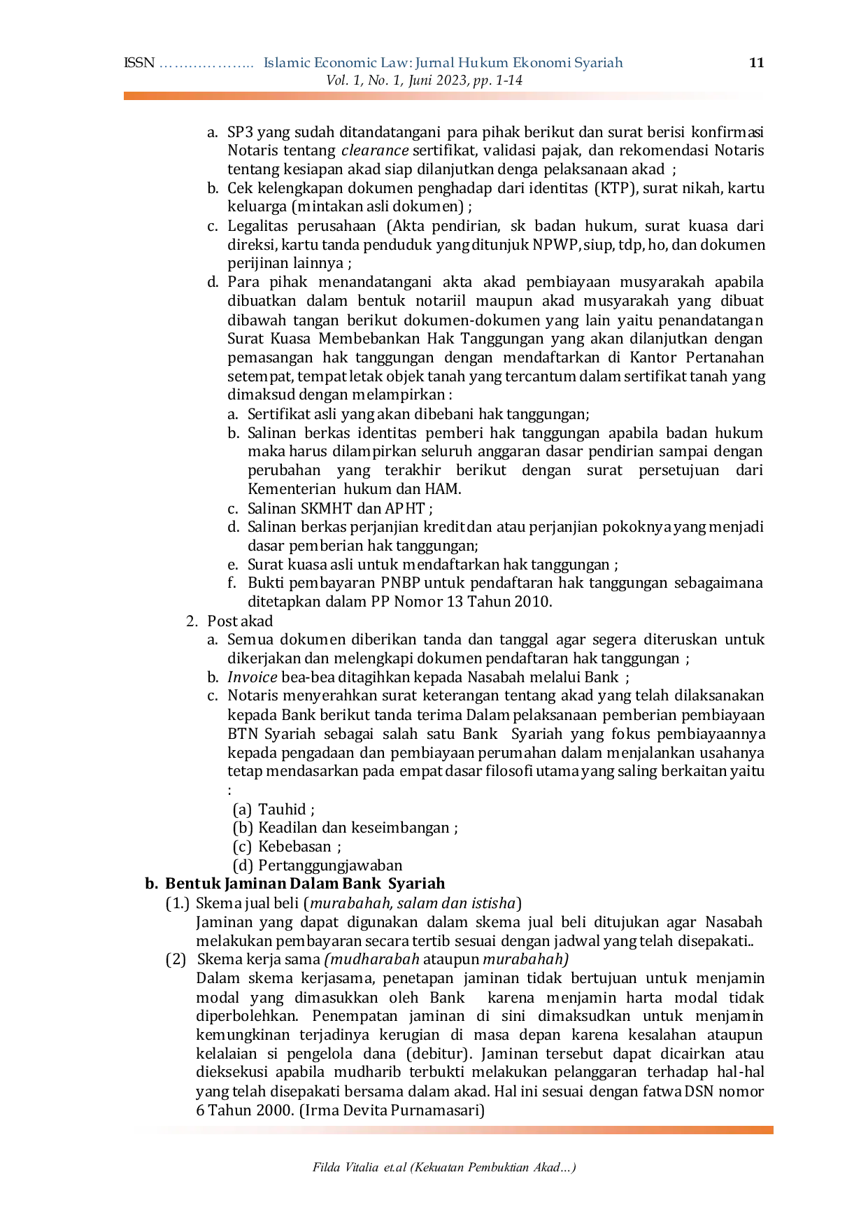Penelitian selanjutnya sangat penting untuk memperluas cakupan studi ini yang saat ini hanya fokus pada satu bank cabang. Misalnya, sebuah penelitian komparatif dapat dilakukan untuk meneliti bagaimana praktik pembuktian akad musyarakah diterapkan di berbagai bank syariah dengan skala dan karakteristik nasabah yang berbeda di seluruh Indonesia untuk mengidentifikasi apakah ada standar praktik yang seragam atau justru beragam. Selain itu, karena kajian ini menemukan bahwa banyak perjanjian aksesori masih mengadaptasi format hukum konvensional, sebuah penelitian hukum normatif dapat dilakukan untuk menggali dan memformulasikan model kerangka hukum perjanjaminan yang benar-benar orisinil dan sesuai dengan fiqh muamalat, sehingga tidak lagi meninggalkan ruang ketidakpastian hukum. Terakhir, arah penelitian yang menarik adalah fokus pada sumber daya manusia, yaitu meneliti sejauh mana kurikulum pendidikan profesi notaris telah mencakup materi hukum ekonomi syariah secara mendalam dan apa saja tantangan praktis yang dihadapi notaris di lapangan saat menyusun akad yang harus mencerminkan prinsip keadilan dan keseimbangan, bukan sekadar kepatuhan formal semata.