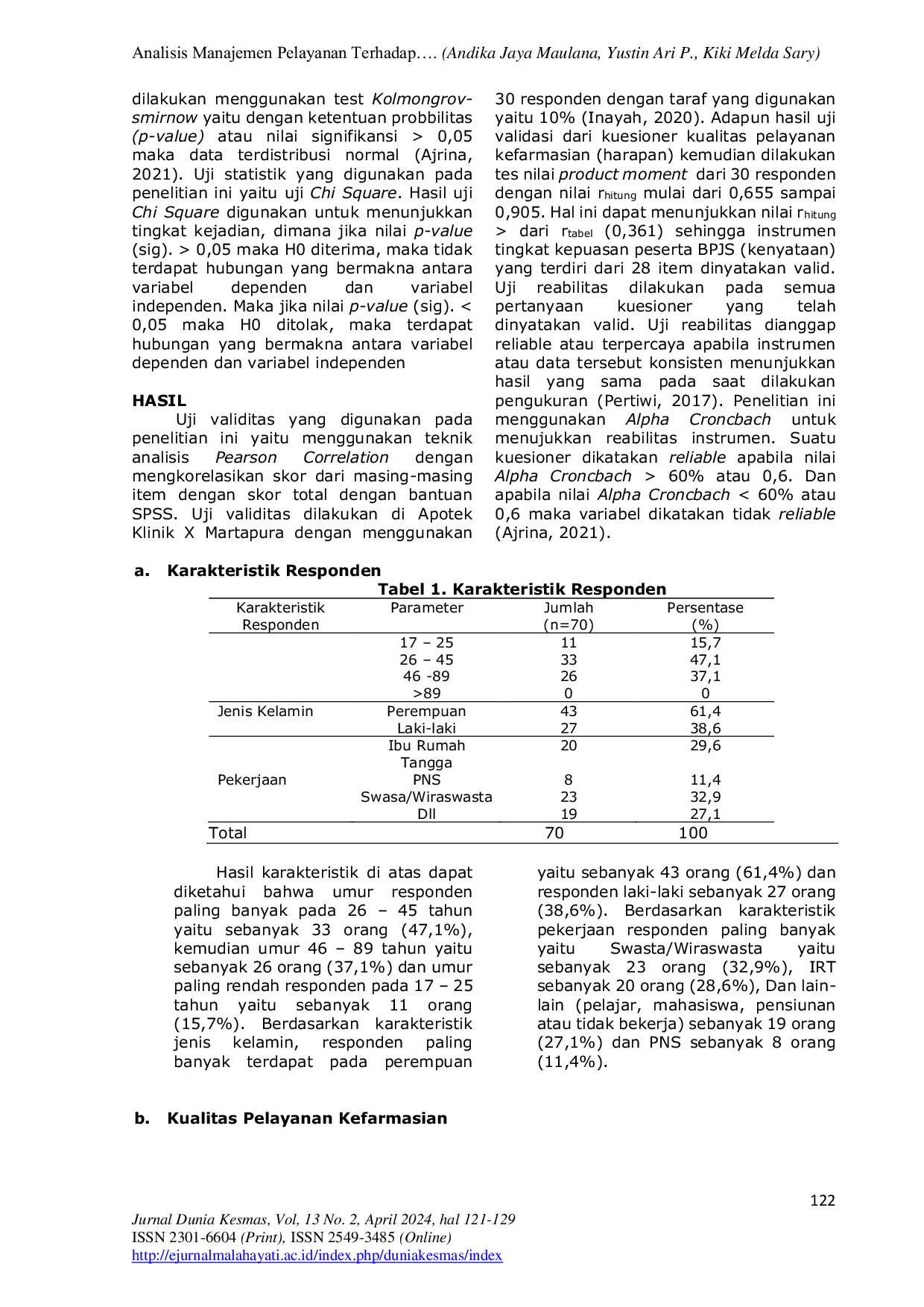 AMAYOGYAKARTAAMAYOGYAKARTA Berdasarkan hasil uji t Kualitas Pelayanan tidak berpengaruh signifikan terhadap Kepuasan Masyarakat pada Pelayanan Puskesmas Mulia Baru Kab. Hal ini ditunjukkanBerdasarkan hasil uji t Kualitas Pelayanan tidak berpengaruh signifikan terhadap Kepuasan Masyarakat pada Pelayanan Puskesmas Mulia Baru Kab. Hal ini ditunjukkan