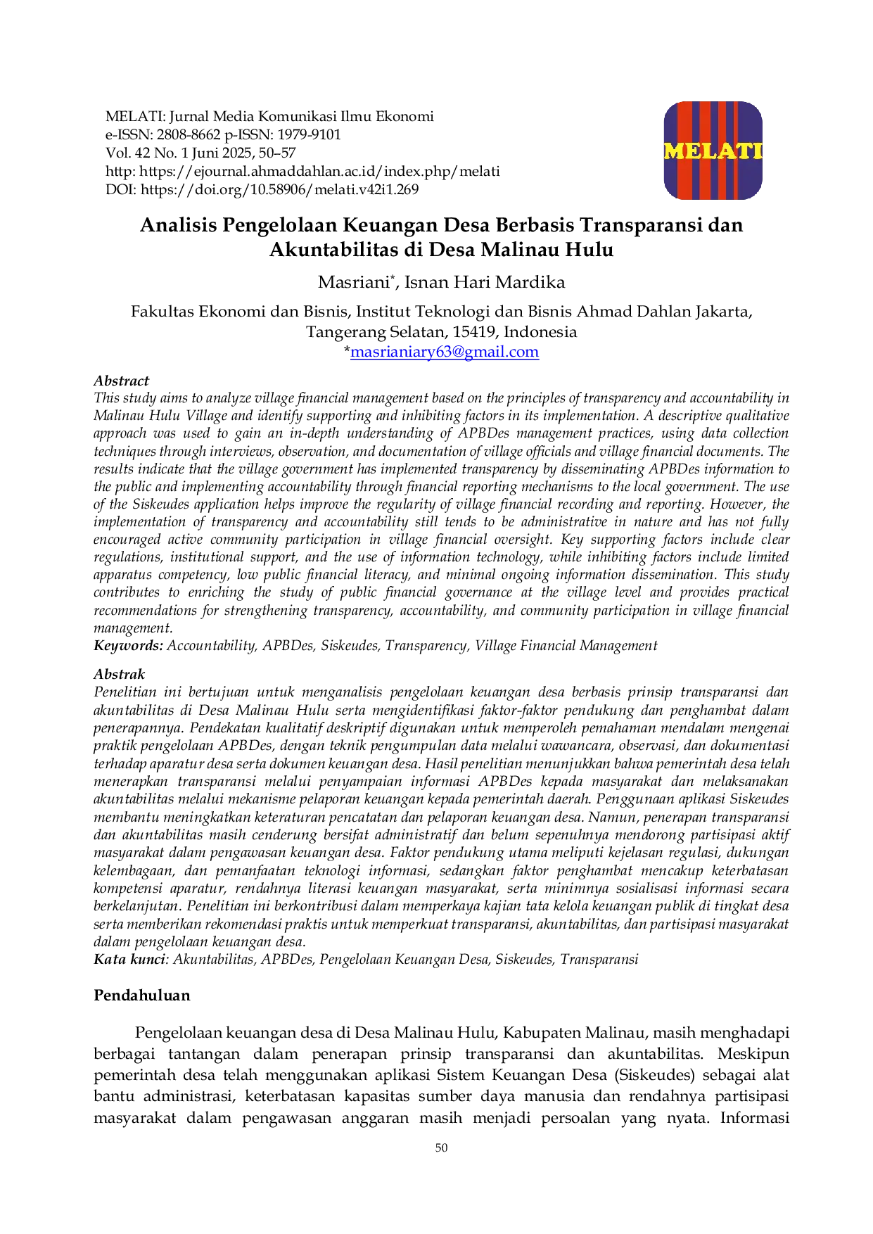 - Analisis Pengelolaan Keuangan Desa Berbasis Transparansi dan Akuntabilitas di Desa Malinau Hulu | Jurnal... ejournal.ahmaddahlan.ac.id/index.php/melati/article/view/269Analisis Pengelolaan Keuangan Desa Berbasis Transparansi dan Akuntabilitas di Desa Malinau Hulu Jurnal ejournal ahmaddahlan ac index php melati article view 269