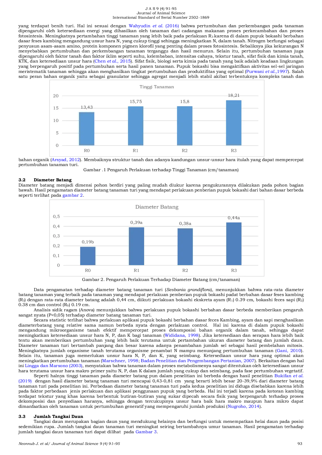 Peneliti lanjutan perlu membandingkan pengaruh bokashi dari jenis hewan lain (misalnya sapi betina atau unggas jenis lain) terhadap pertumbuhan turi dalam masa pertumbuhan lebih panjang. Selain itu, studi lebih lanjut dapat menguji komposisi optimal bokashi dengan variasi konsentrasi bahan baku (seperti daun gamal atau dedak) untuk meningkatkan efisiensi aplikasi. Penelitian juga disarankan memantau dampak jangka panjang penggunaan bokashi terhadap kesehatan tanah dan produktivitas turi secara bertahap.