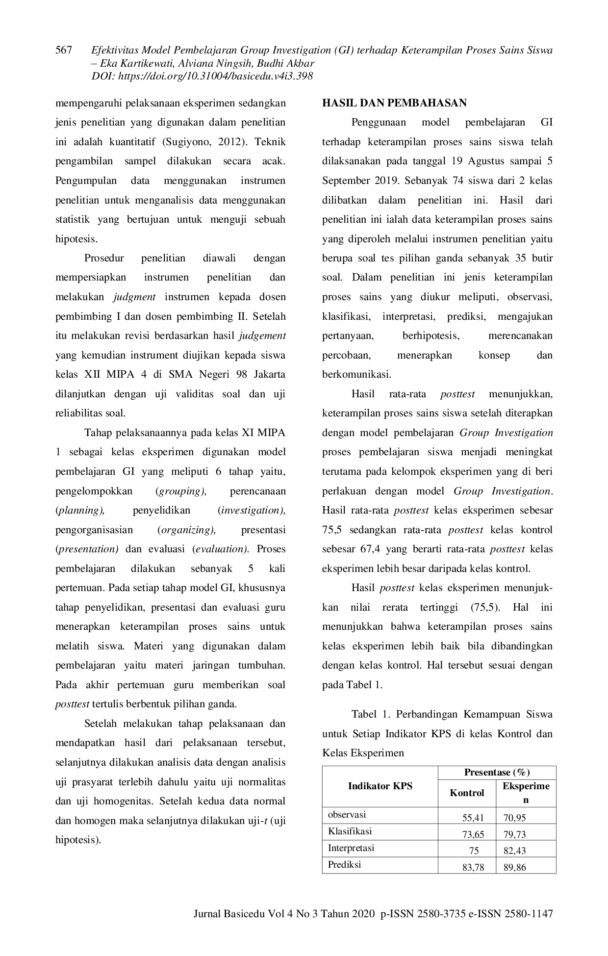 - Efektivitas Model Pembelajaran Group Investigation (GI) terhadap Keterampilan Proses Sains Siswa | Jurnal... doi.org/10.31004/basicedu.v4i3.398Efektivitas Model Pembelajaran Group Investigation GI terhadap Keterampilan Proses Sains Siswa Jurnal doi 10 31004 basicedu v4i3 398