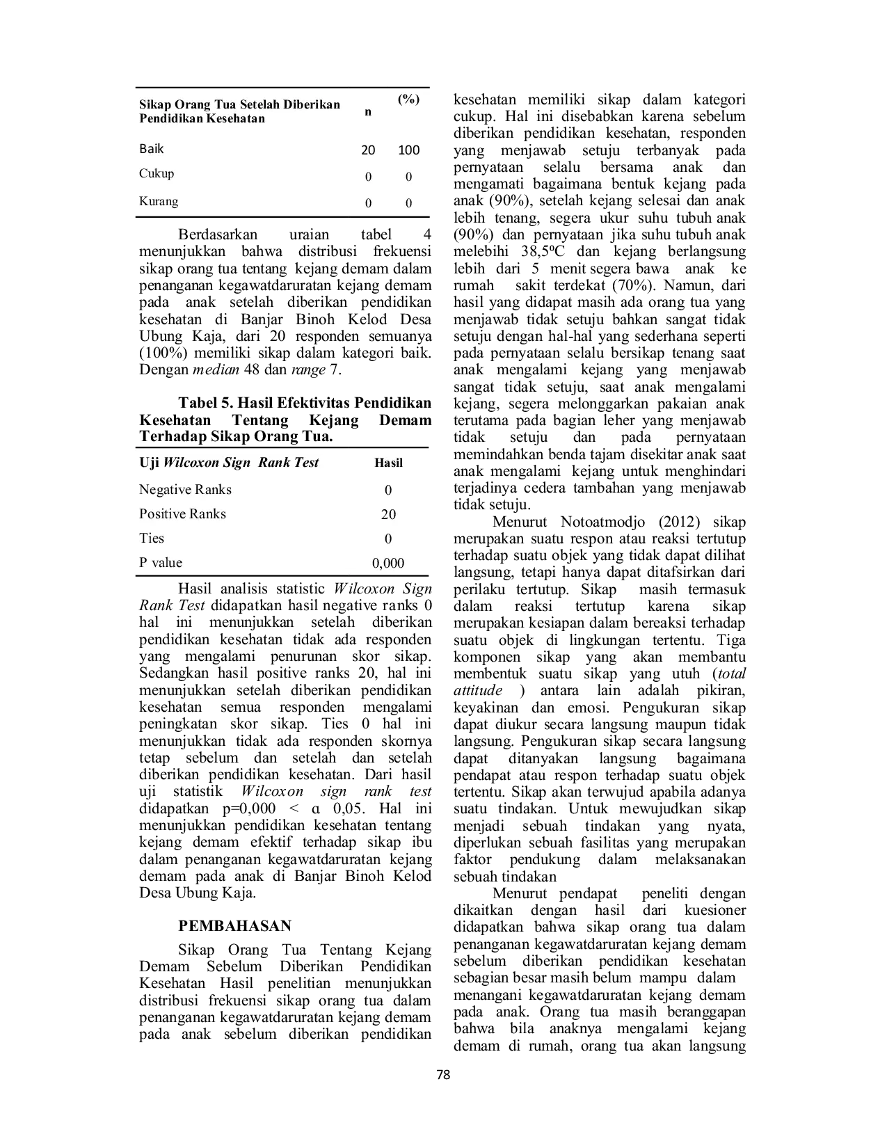 Jurnal Riset Kesehatan NasionalJurnal Riset Kesehatan NasionalPenelitian ini bertujuan untuk mengetahui . Penelitian ini menggunakan desain pra-eksperimental dengan pendekatan one group pre test post test design. Hasil penelitian menunjukkan bahwa pendidikan kesehatan tentang kejang demam efektif terhadap sikap orang tua dalam penanganan kegawatdaruratan kejang demam pada anak.